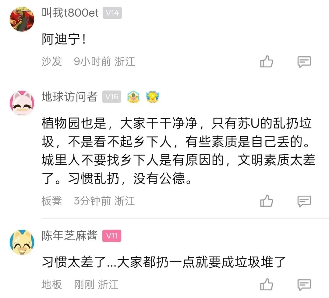 这就有嘉兴人吐槽了: 出来玩能不能素质高一点? 不要在景区乱扔垃圾! ▽ 19楼网友爆料: