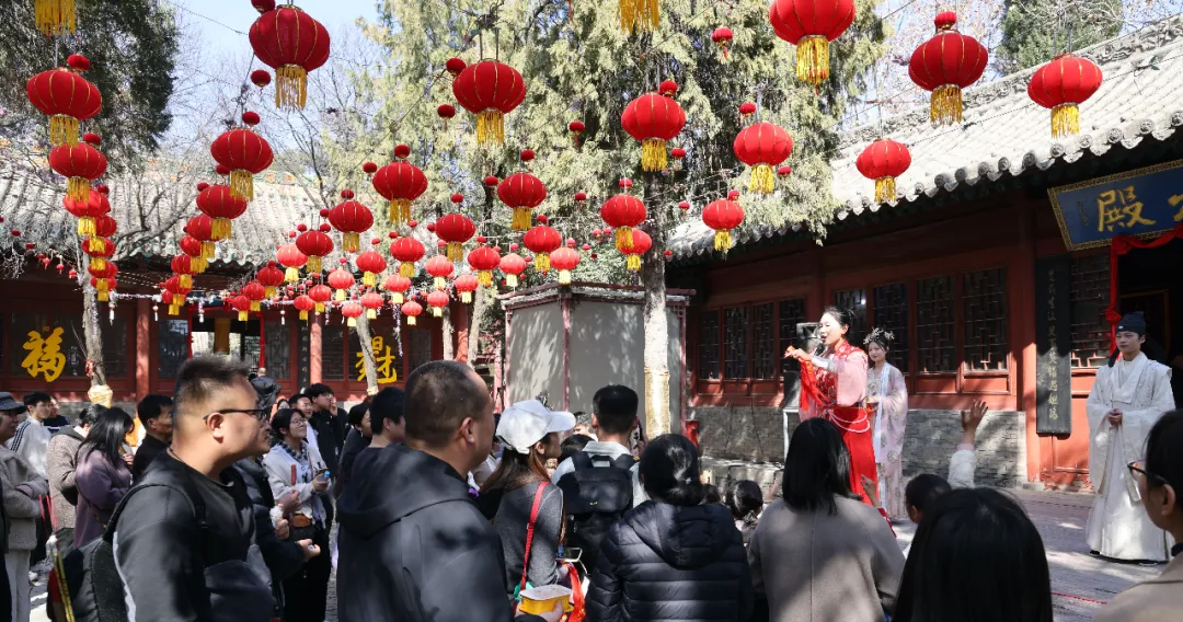 春节期间,永济普救寺景区以“福运良缘·情满西厢”为主题,推出沉浸式祈福、实景演艺、非遗展演、互动打卡等系列活动,将《西厢记》浪漫文化与传统年俗深度融合,吸引各地游客前来寻缘祈福、赏景看戏,景区内喜气洋洋、爱意满满,成为新春文旅热门打卡地。
