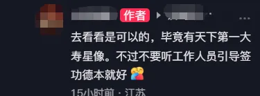 网友表示,去看看是可以的,毕竟有天下第一大寿星像。不过不要听工作人员引导签功德本就好!