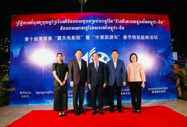 据柬媒消息,2026年2月21日晚,第十届柬埔寨“露天电影院”暨“中柬旅游年”春节特别放映活动在金边市步行街举办。本次活动由中国中央广播电视总台亚非中心、柬埔寨文化艺术部、旅游部及金边市政府联合举办。