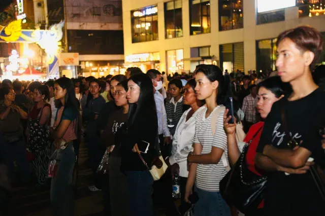 活动现场氛围热烈,吸引了大量市民及国内外游客驻足观赏。主办方精心准备了丰富的视听盛宴,内容涵盖:中国中央广播电视总台春节联欢晚会精华短片、柬埔寨旅游宣传片、音乐短片,以及两部电影——中国高口碑电影《你好,李焕英》和柬埔寨经典电影《Moranak Meada》。