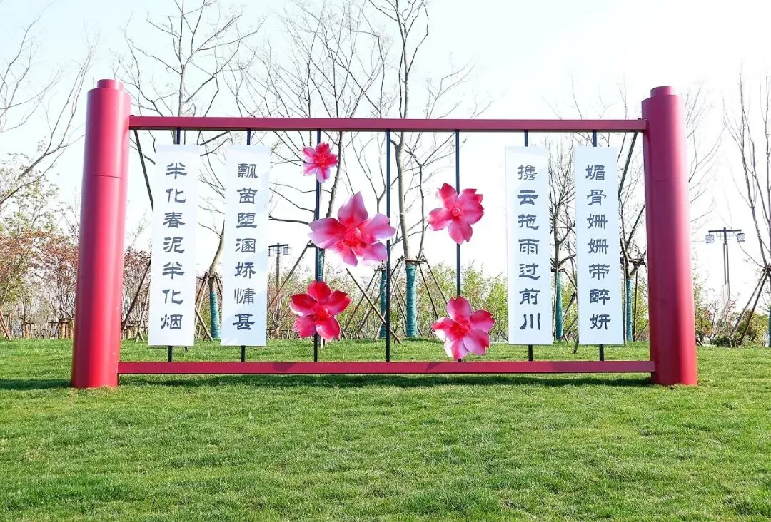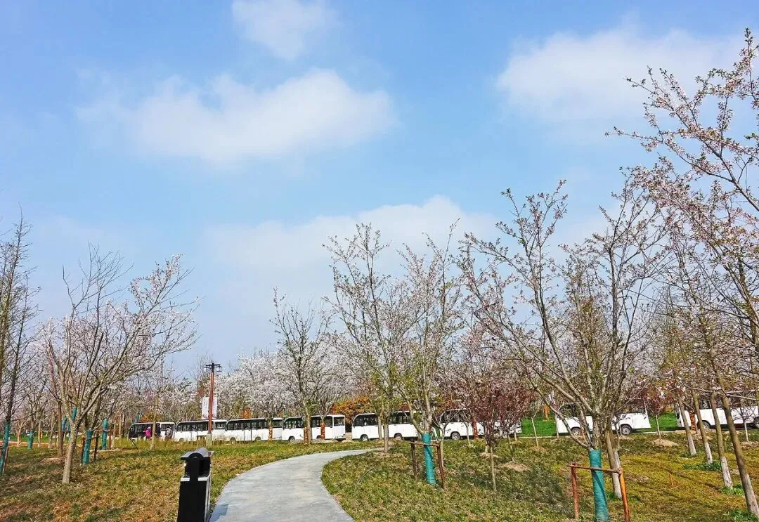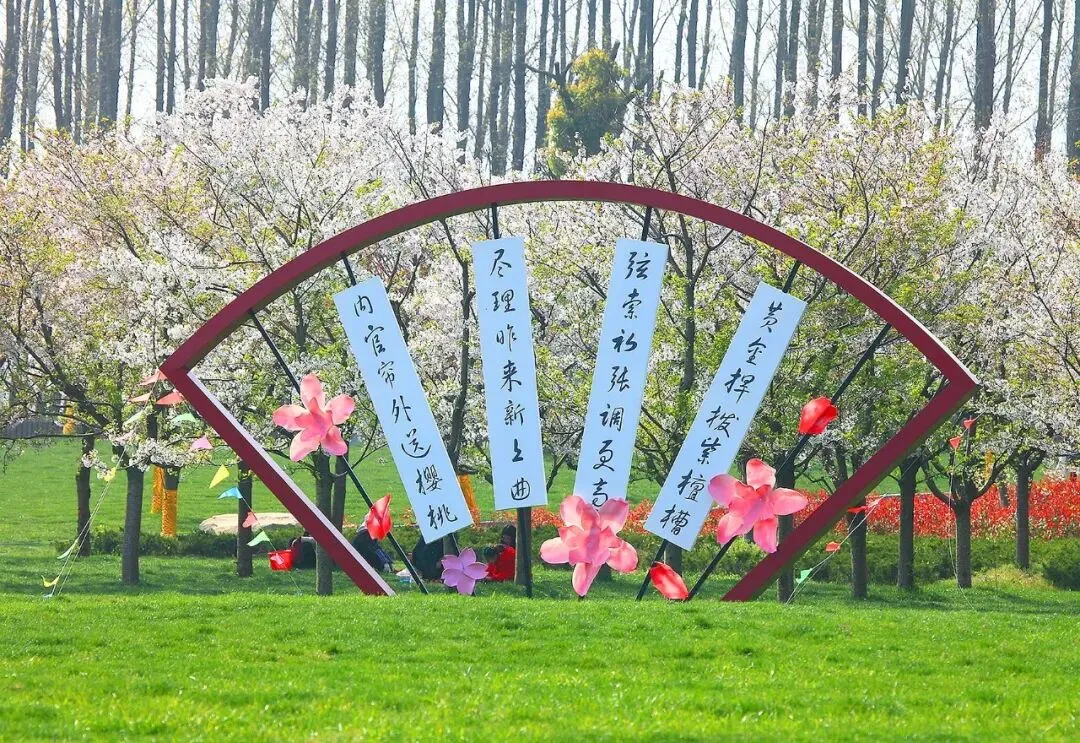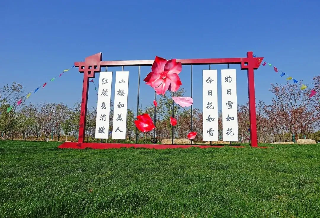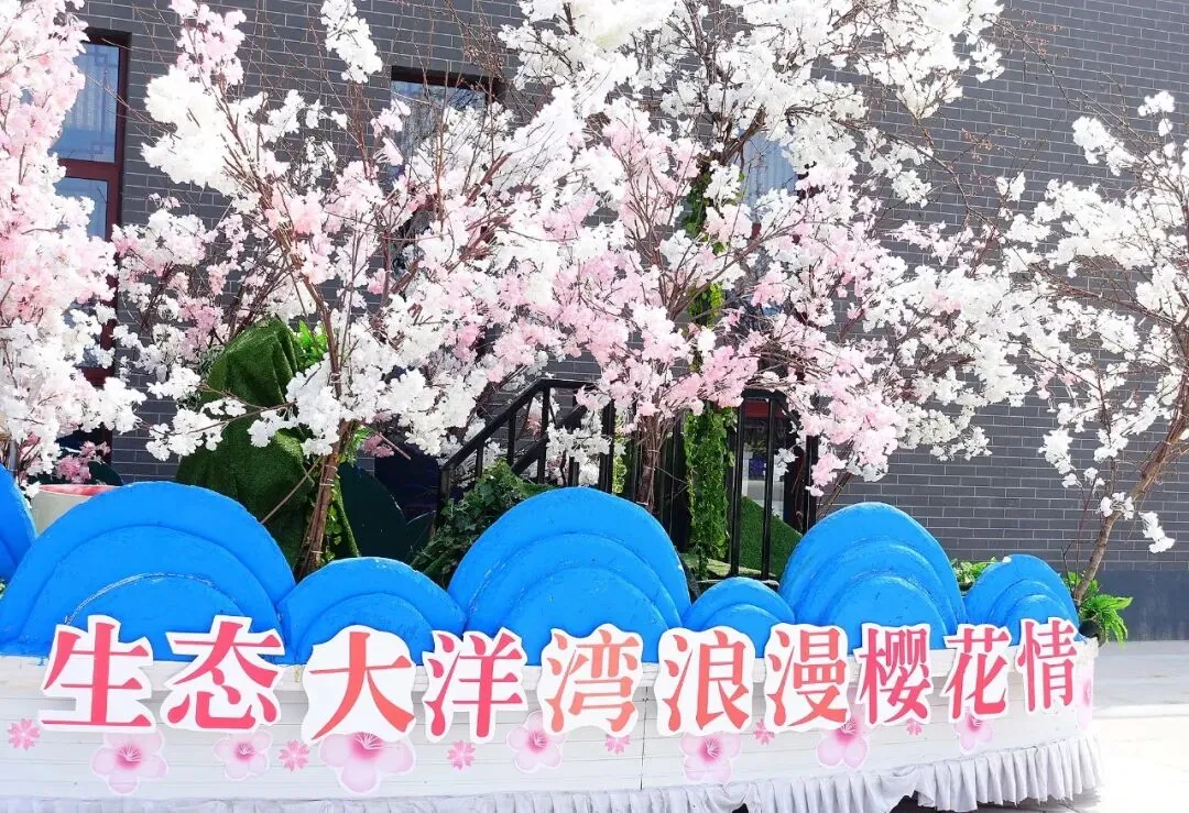 樱花树丛间,一群活泼可爱的小动物卡通形象栩栩如生,小朋友们喜欢与它们合照。唐代诗人张籍写了这样一首宫词:黄金捍拨紫檀槽,弦索初张调更高。尽理昨来新上曲,内官帘外送樱桃。这首诗描写了春天君王白天去狩猎,回宫听曲吃樱桃的盛景。景区将这首诗写于草地上的木制扇面上,倒也契合樱花的烂漫、大洋湾的草长莺飞和春色满园。大洋湾樱花绽放,春天是去欣赏樱花的最佳时节,附近的居民以及游客们纷纷放下手中的事,去大洋湾游玩一番,尽情享受这春天的旖旎风光和生活的无限乐趣,多多和大自然亲近,给情绪放个假。