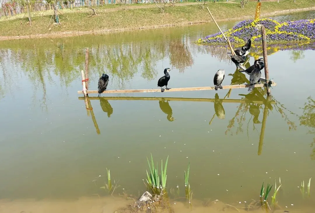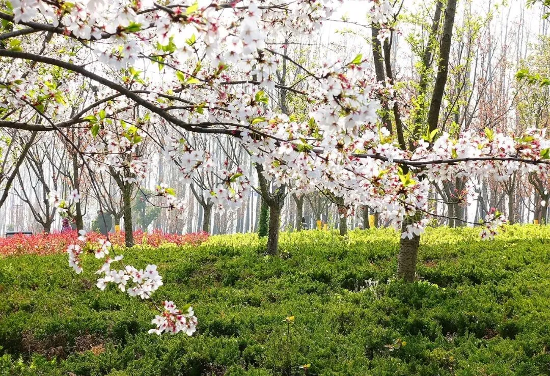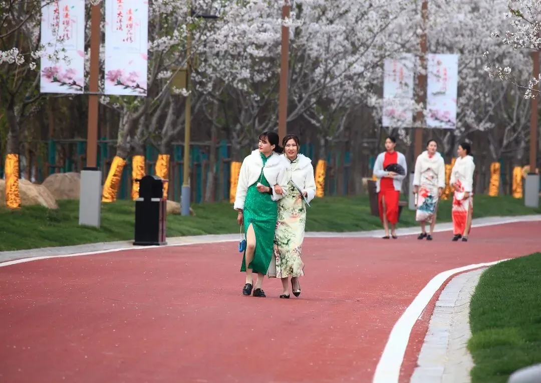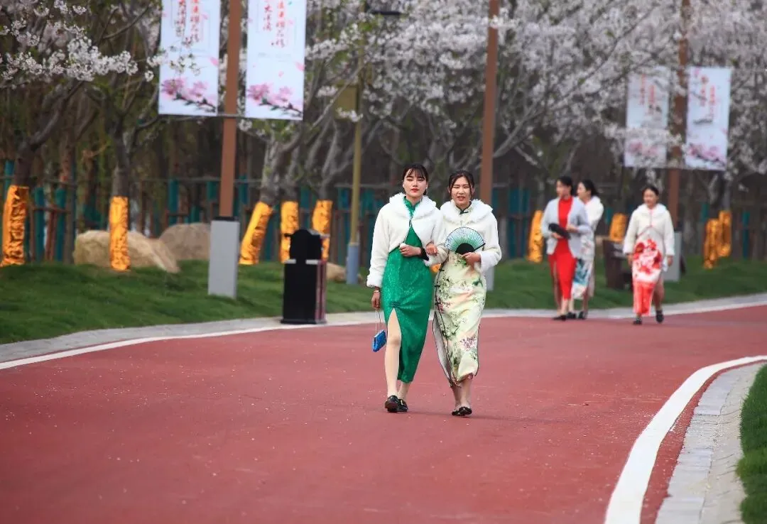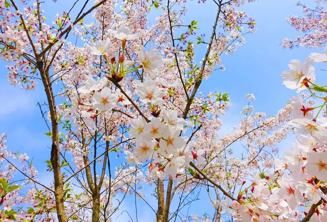 樱花树丛间,一群活泼可爱的小动物卡通形象栩栩如生,小朋友们喜欢与它们合照。唐代诗人张籍写了这样一首宫词:黄金捍拨紫檀槽,弦索初张调更高。尽理昨来新上曲,内官帘外送樱桃。这首诗描写了春天君王白天去狩猎,回宫听曲吃樱桃的盛景。景区将这首诗写于草地上的木制扇面上,倒也契合樱花的烂漫、大洋湾的草长莺飞和春色满园。大洋湾樱花绽放,春天是去欣赏樱花的最佳时节,附近的居民以及游客们纷纷放下手中的事,去大洋湾游玩一番,尽情享受这春天的旖旎风光和生活的无限乐趣,多多和大自然亲近,给情绪放个假。