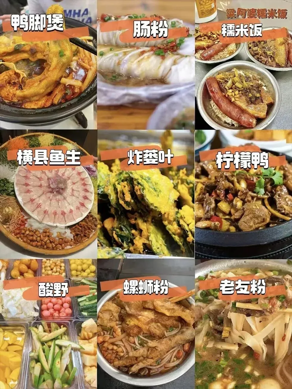 🥢特色美食:螺蛳粉.、鸭脚煲、炒螺、露水汤圆、滤粉