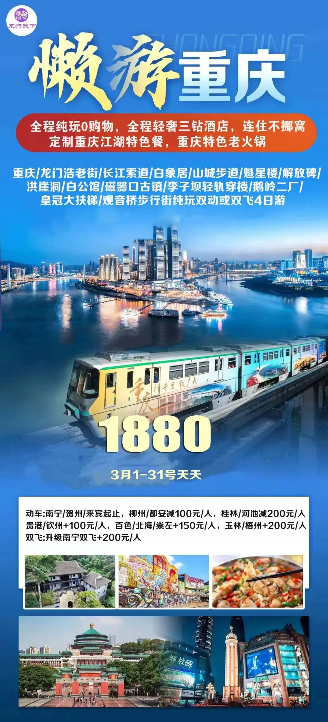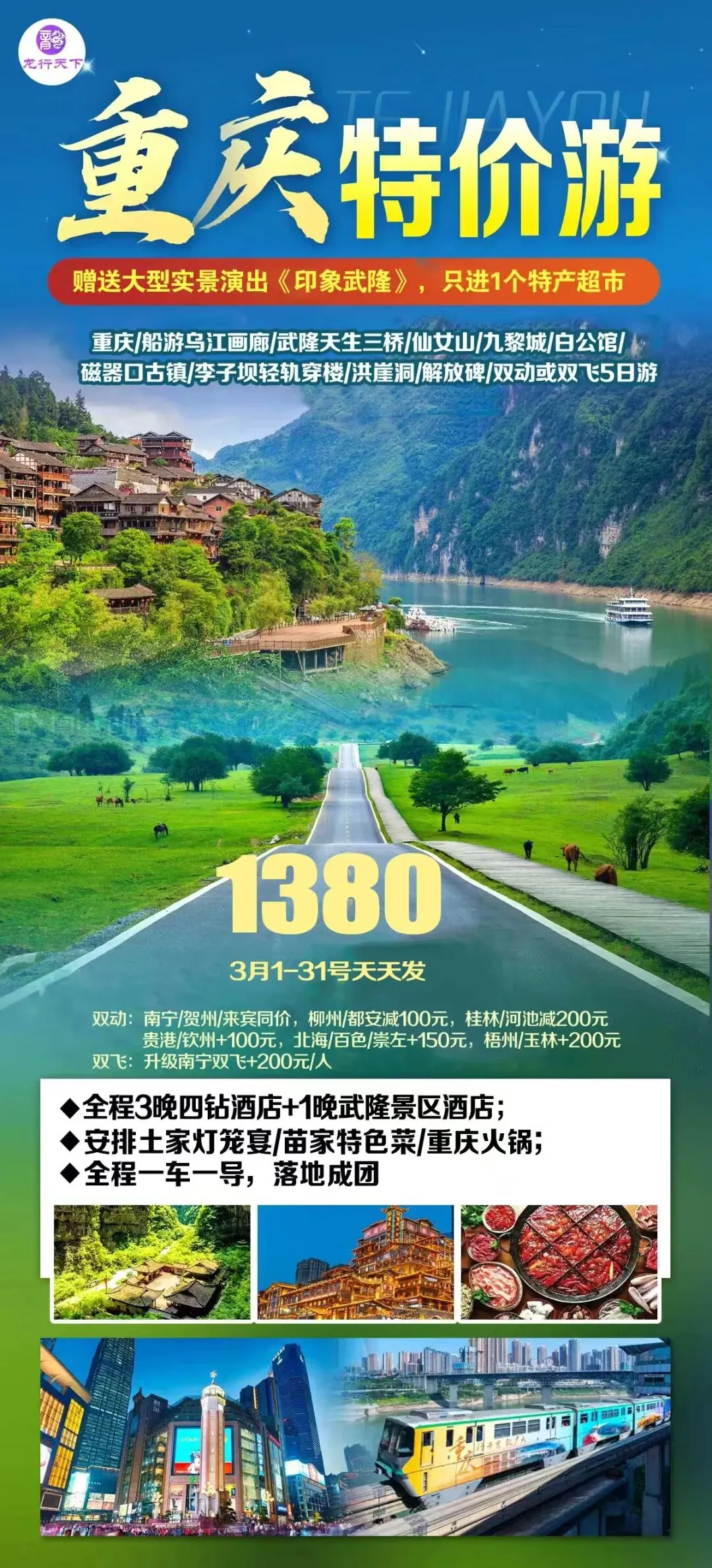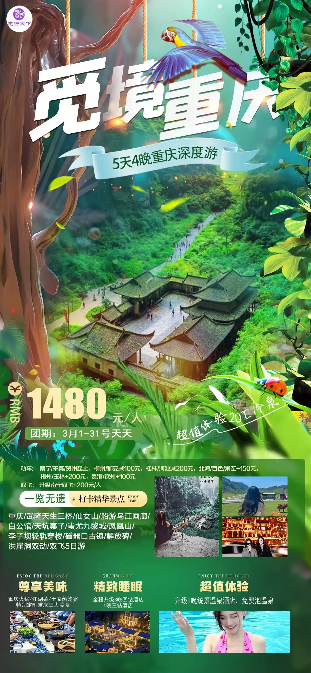 【重庆】3月 重庆 旅游线路推荐 报名优惠!