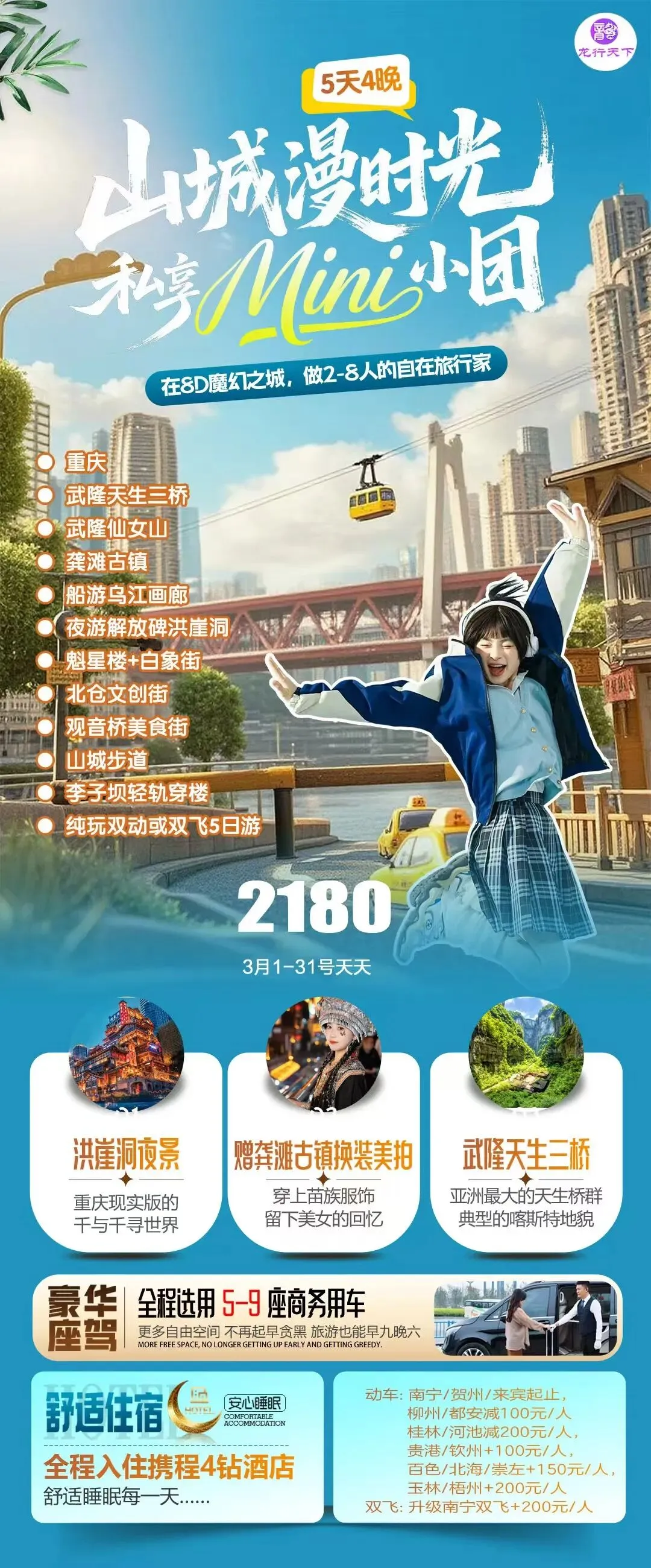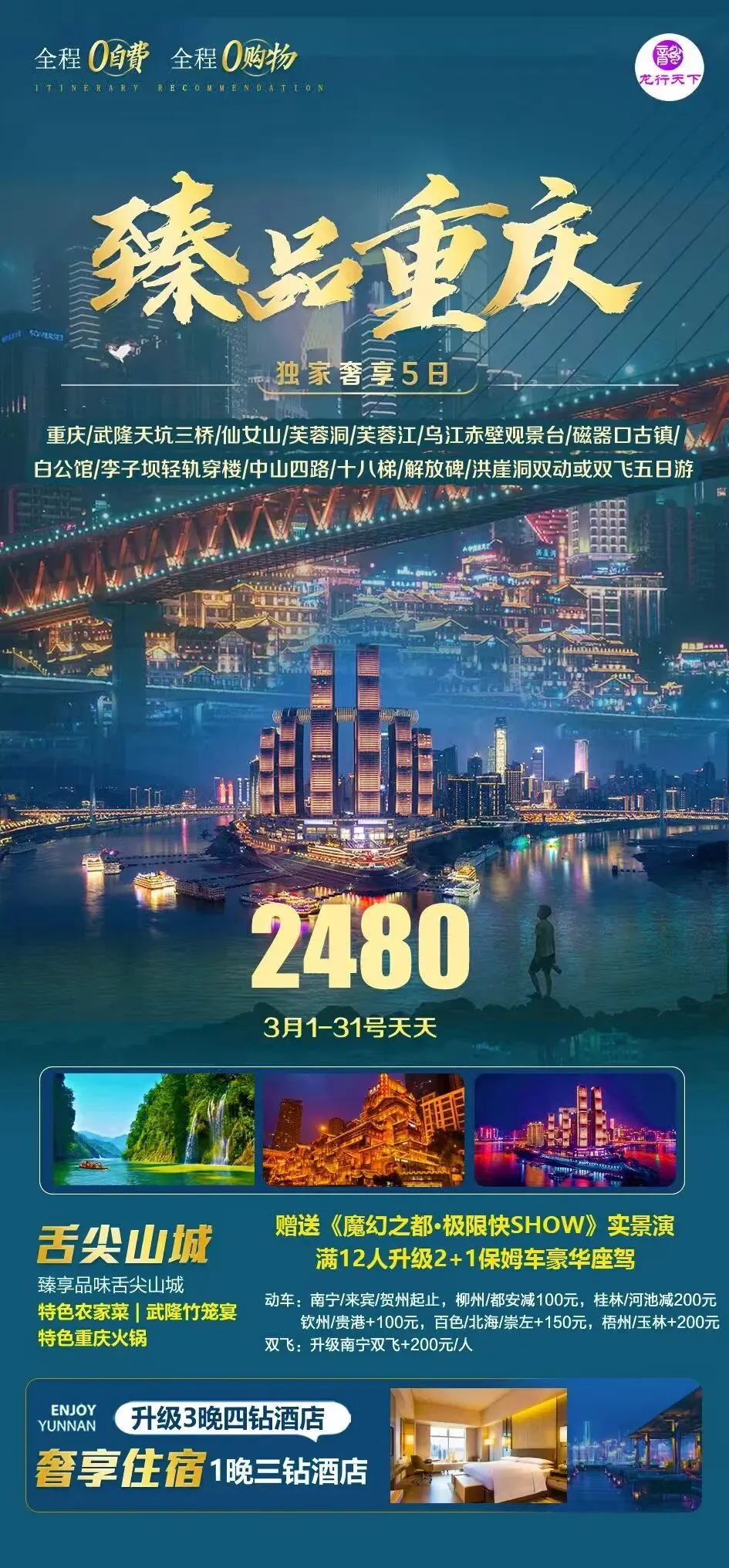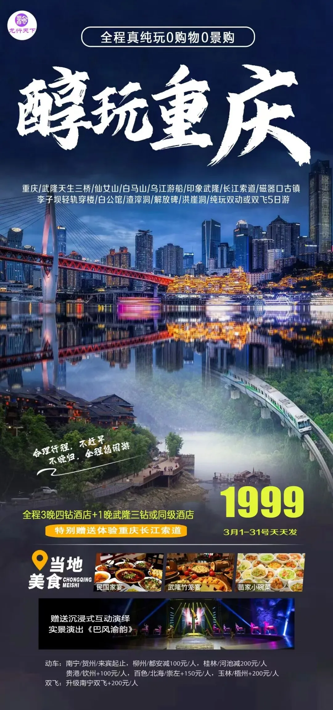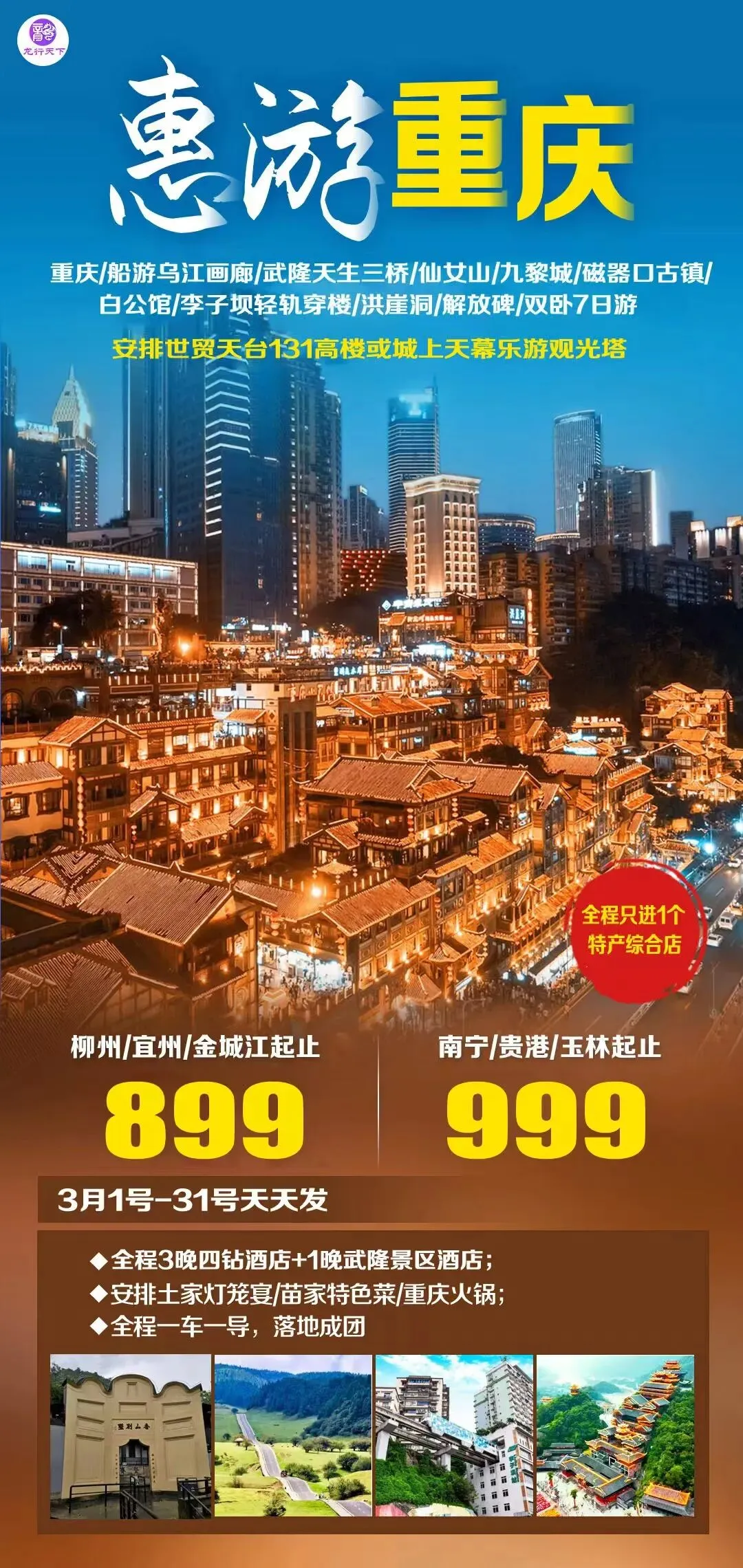 【重庆】3月 重庆 旅游线路推荐 报名优惠!