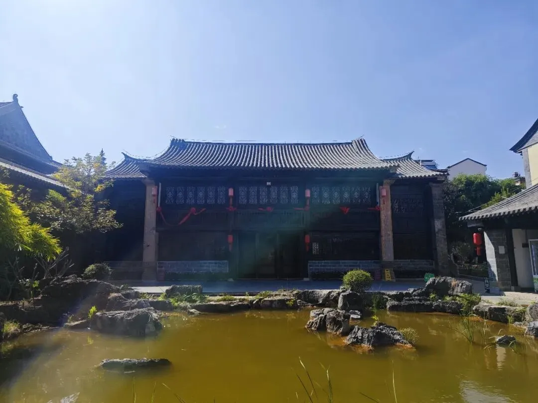 玉皇阁与白雀寺景区连在一起,先进了白雀寺,这座寺庙始建于清代,民国重修,整体看着很新。进入大门之后,看到一块景观小池塘,后面的建筑做了展厅。