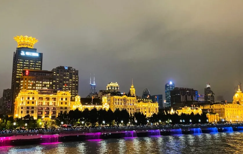 18:00—20:00 十六铺码头乘坐游船【夜游浦江】船票150元/人。随着江水的流动,两岸的景致如画卷般徐徐展开。外滩的万国建筑群在灯光的映衬下,显得更加庄重而典雅,仿佛诉说着这座城市的历史与变迁。