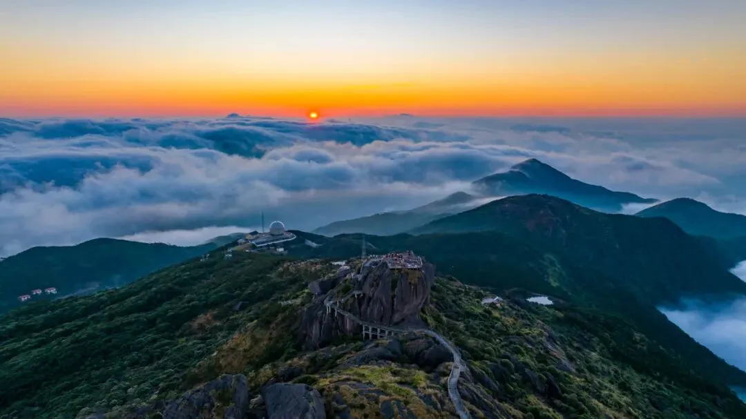 海拔1782米的“八闽观日第一峰”奇石星罗、云海翻涌,晨曦初露时,整座山峦沐浴金光,宛如仙境。