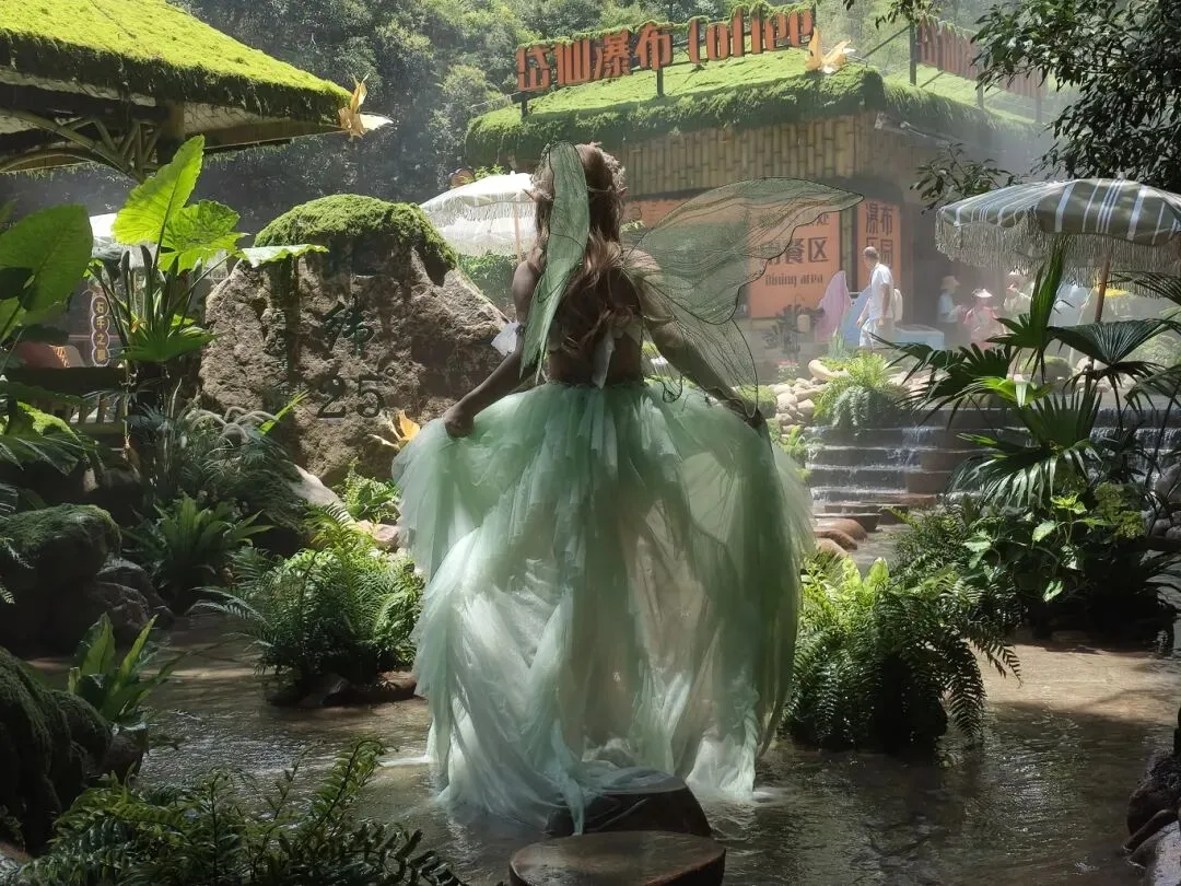 瀑布咖啡,绿野仙踪。岱仙瀑布啡屋位于竹林小栈,提供咖啡、奶茶、果汁等饮品。咖啡屋背枕岱仙瀑布,流水潺潺,满目绿意,是远观岱仙瀑布、旅途休憩、打卡的最佳点位。