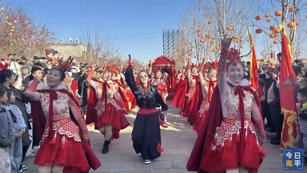 据统计,大年初一以来,景区日均客流量达3万人次。春节期间,喜镇苏庄推出了“喜镇、喜事、喜饰”主题系列活动,“仙女散花”“凤舞九天”“飞马迎春”等高空表演惊艳全场,更有烟花秀、篝火晚会、火壶表演、持灯夜游、NPC互动、怀旧货郎市集等特色活动,从白天一直持续至夜晚,营造出热闹喜庆的节日氛围。