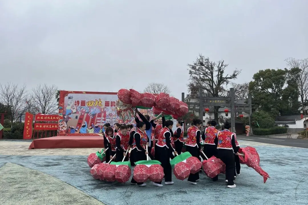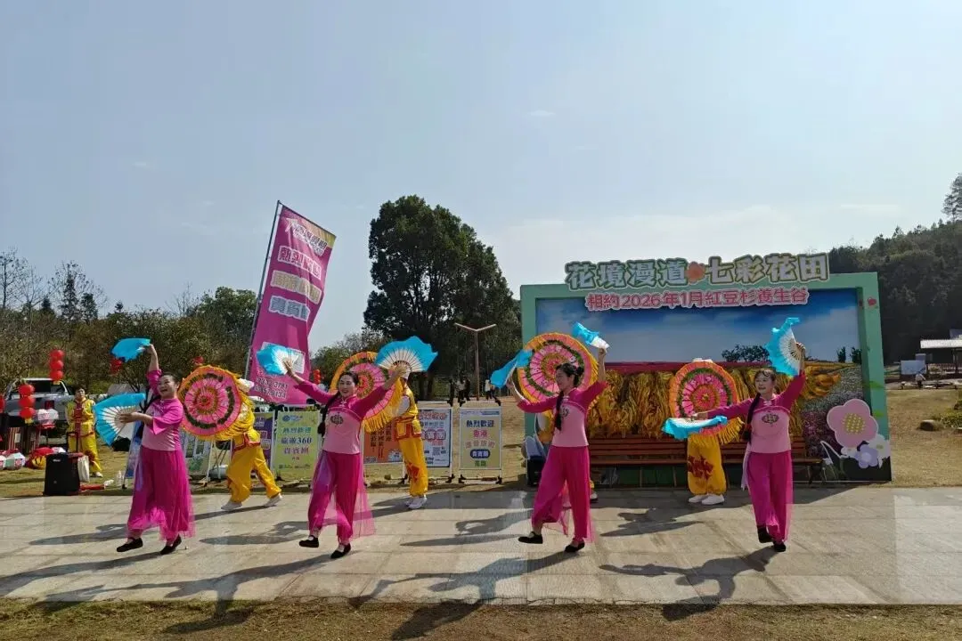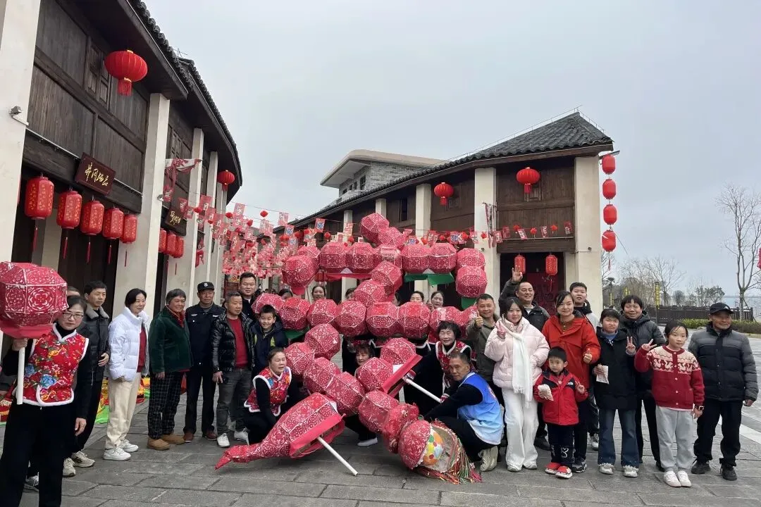 活动现场好戏连台,节目内容丰富多彩:龙灯《中国人》气势磅礴;采茶戏《茶童戏主》片段《搭船巧遇》韵味十足;舞蹈《跳起来舞起来》《担鲜藕》《摘花椒》等节目活泼欢快;省级非遗项目——万安股子灯《天下太平》更是将演出推向高潮,为景区增添了浓厚的喜庆氛围。