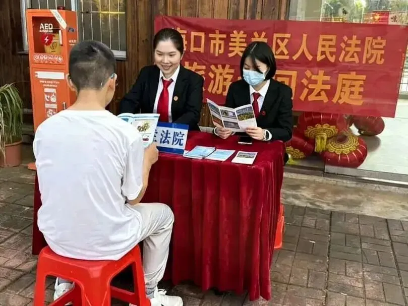 在海口火山口地质公园、观澜湖冯小刚电影公社、五公祠、白沙门公园等多个海口热门景区,海口法院通过“驻点+巡回法庭”模式,在景区人流密集区域设立咨询台,立足游客实际需求,通过面对面答疑、发放普法资料等方式,向过往游客普及旅游消费、出行安全、依法维权等法律知识。针对游客提出的各类问题,干警们结合典型案例细心释法析理,帮助游客在陌生环境中也能迅速找到依法维权的“主心骨”,引导大家理性表达诉求、依法解决纠纷。
