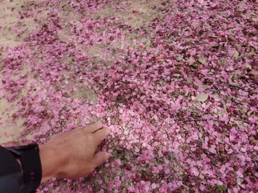当我骑到健康路的尽头,向左一拐,一蓬粉色便映入眼帘了。这条幽静的小路本来十分寻常,但因为两旁的梅花,便显得与众不同。特别是遍地缤纷的落樱,一望无际,所营造出的浪漫气氛,让人陶醉。