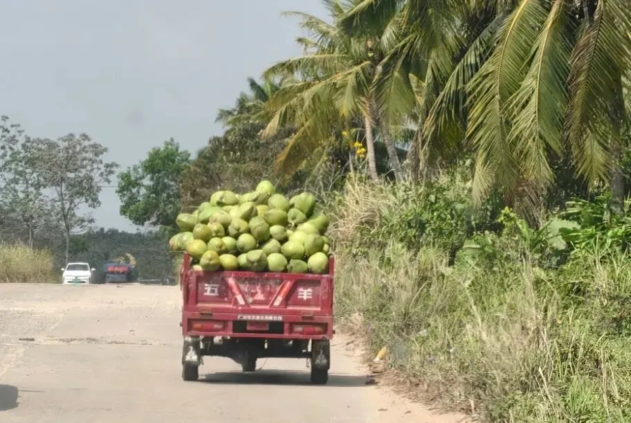 路上还遇到好多拉着满满椰子的四轮车或三轮车。
