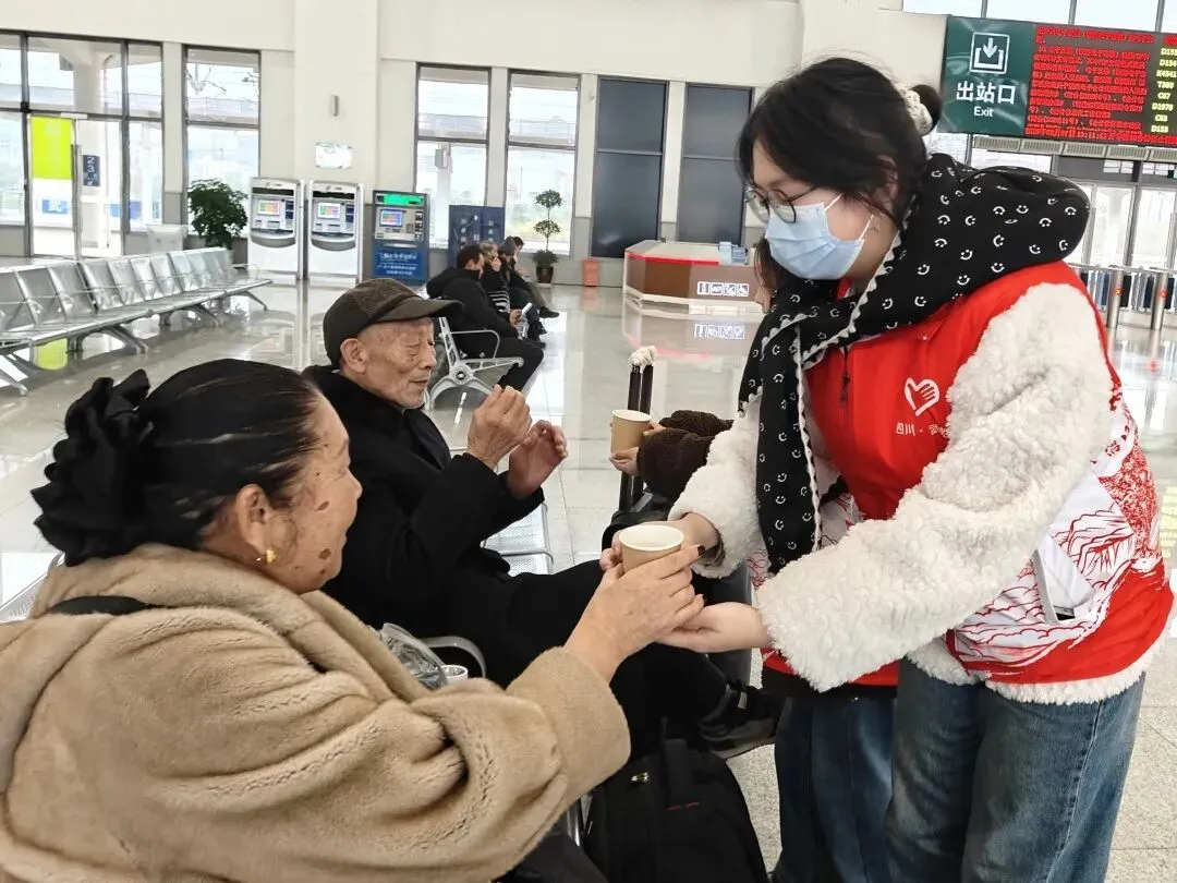 在武胜客运中心站、万善火车站,返乡大学生志愿者化身春运里最温暖的“志愿红”,积极配合车站工作人员维护现场秩序,引导旅客购票、安检、进站乘车,帮忙搬运行李、指引换乘路线、解答出行咨询。针对老年人、携带幼儿家庭等特殊群体,志愿者提供一对一全程陪伴服务,用细心与耐心传递温暖。此外,志愿者们还向返乡群众发放就业创业政策宣传资料和惠民礼包,发出留乡发展的诚挚邀请,以实际行动守护平安春运、温暖返乡之路。