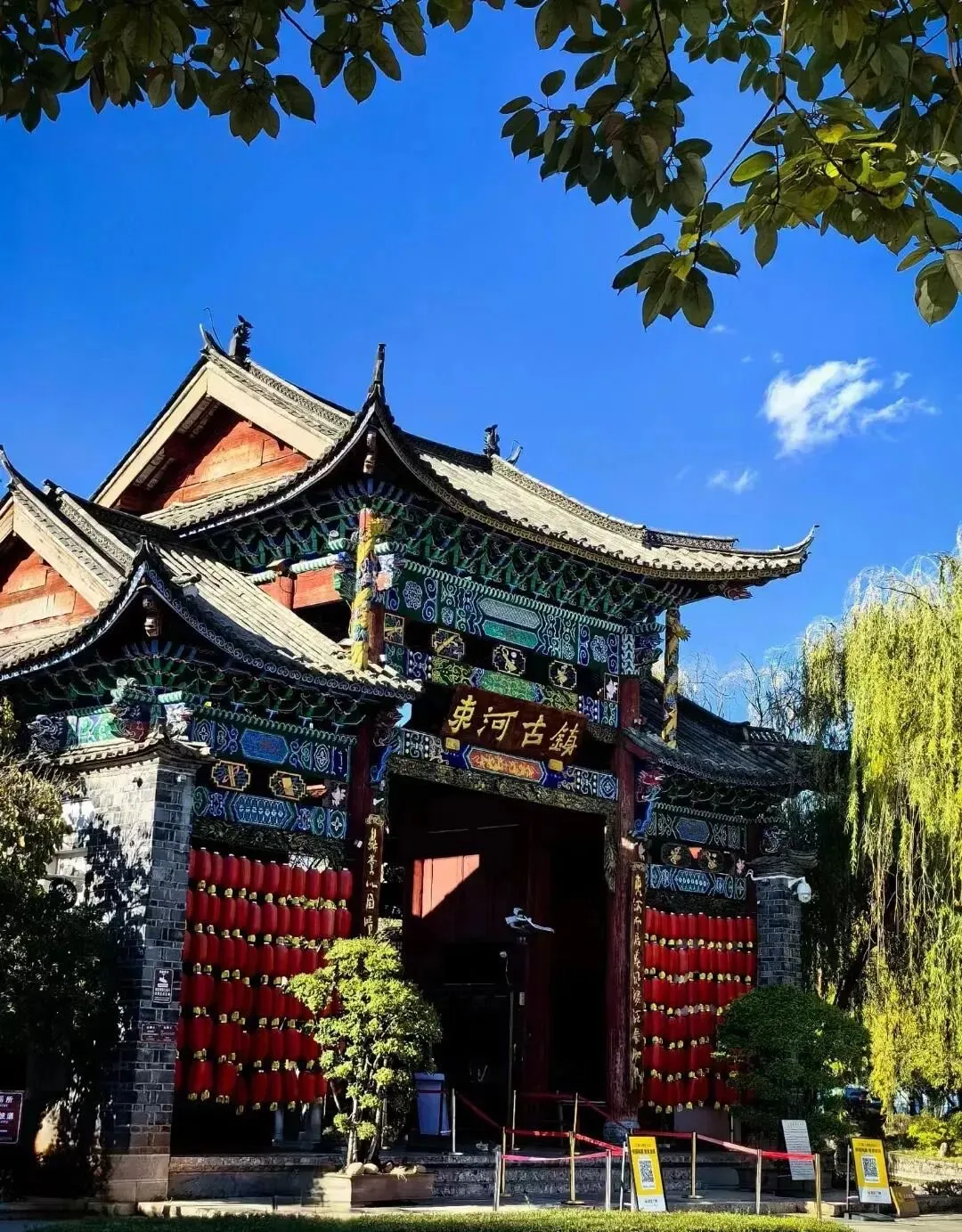 6.束河古镇:束河古镇作为丽江古城的一个组成部分,有保存完好的古道、集市,有传统民居近千幢,土著居民以纳西族为主,是纳西族先民在丽江坝子中最早的聚居地之一。自明代以来,许多从事皮革加工和其他手工业的人云集束河,繁华热闹,束河古镇逐步成为茶马古道上的重镇和纳西文化交流中心。束河是纳西族从农耕文明向商业文明过渡的活标本,拥有明代壁画、明代建筑大觉宫、清代建筑三圣宫等珍贵文物和建筑。