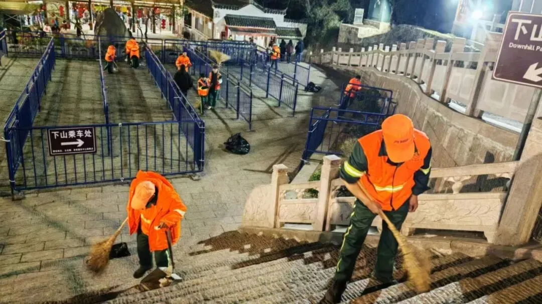 万家团圆时,橙衣守岗人。他们以责任为帚、以奉献为灯,用汗水擦亮九华山的“颜值”,用坚守传递新春的温暖。