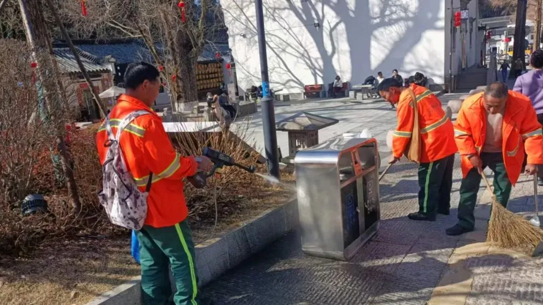 针对春节假期客流高峰,风景区提前部署,在重点区域增设8处临时垃圾收集点,更新100余个果皮箱,并采取错峰收运、日产日清的方式提升清运效率。面对人流密集带来的保洁压力,环卫工人加密巡回保洁频次,及时清理香烛残屑,消除安全隐患。在日均处理垃圾量达72吨(约为平日3倍)的情况下,始终保持景区环境干净整洁。
