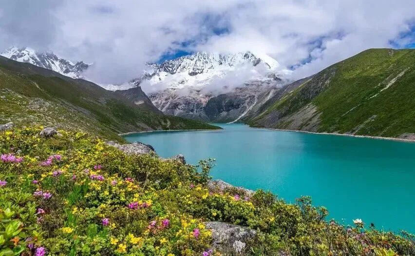 库拉岗日是山南海拔最高的山峰,而白玛林错则是镶嵌在它脚下的一颗璀璨明珠,二者相依相伴,构成了洛扎县震撼的自然画卷。