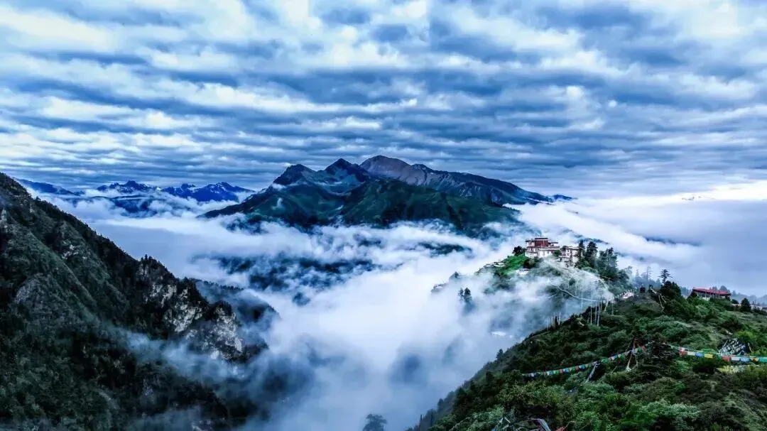 卡久景区被誉为“云端仙境、神鸟故乡”,是生态与人文交融的藏地秘境。这里不仅有云海缭绕的自然盛景,6-9月云雾漫过山峦,悬崖之上的卡久寺若隐若现,宛如仙境。