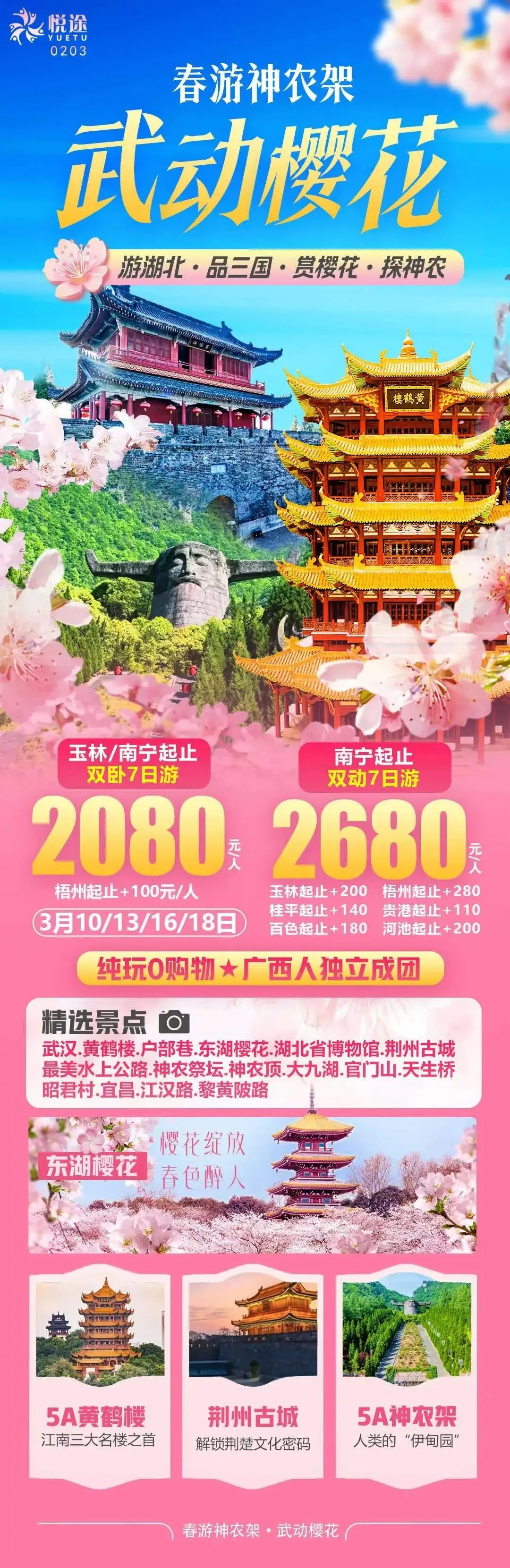 湖北:3月旅游线路汇总