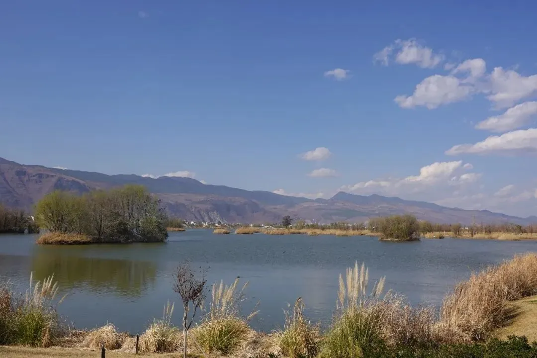 离鹤庆县城不远的西龙潭、白龙潭、西草海、东草海,秀美的山水风光吸引了许多返乡人员和外地游客前来游玩打卡,在绚丽的风景中欢度春节。