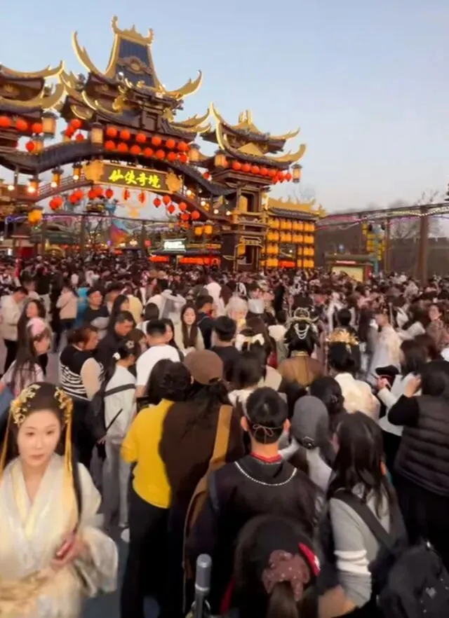 无独有偶,河南开封的万岁山武侠城直接扛不住客流,官宣停止线上线下所有售票;长城景区更是成了 “人头长城”,有网友凌晨四点半就起床赶早,到了地方才发现,别说凭栏远眺了,连个下脚的地方都找不到;清明上河园的游客更是多到网友调侃 “全中国一亿人都在这了”。