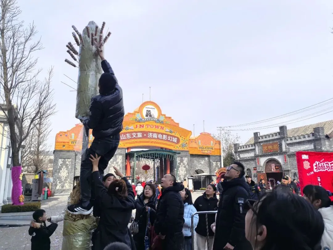 新甫山景区以“祈福”为情感锚点,推出福运打卡墙、巨型金色福字等传统祈福场景;沂山景区则围绕“马上有福”的核心意象,策划“马上封侯”“马到成功”等主题打卡线路,将美好寓意转化为可游可感的游览动线。济南电影幻城与鑫诚田园另辟蹊径,以巨型糖葫芦树引爆视觉记忆点,成为亲子家庭与年轻客群争相留影的“流量入口”。