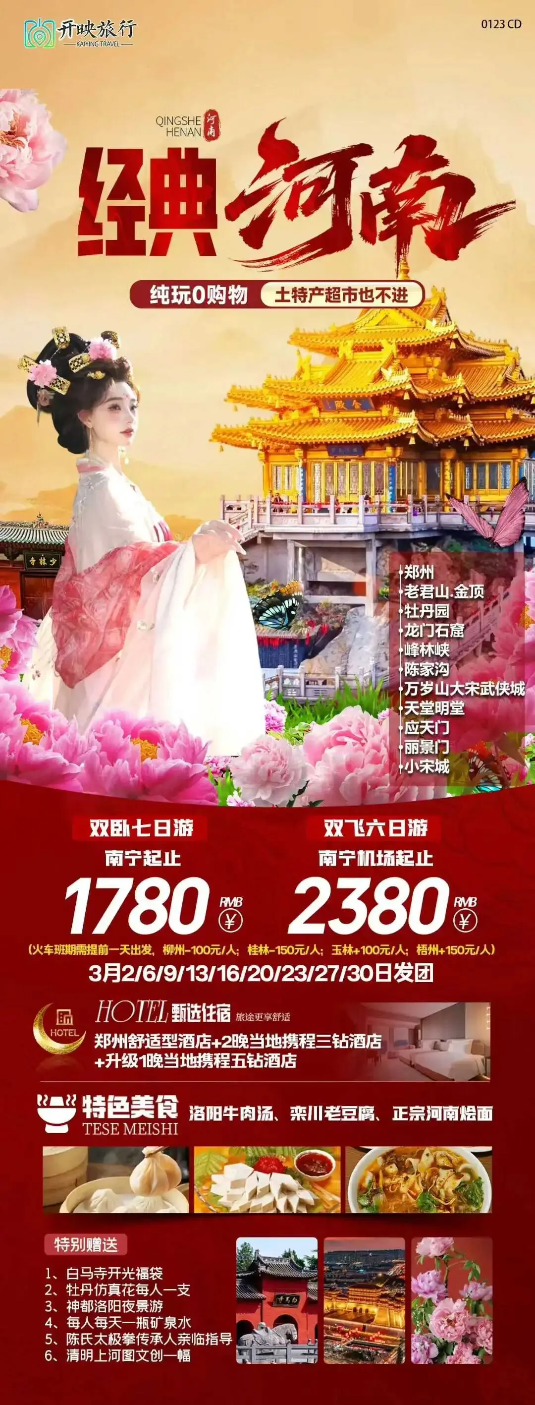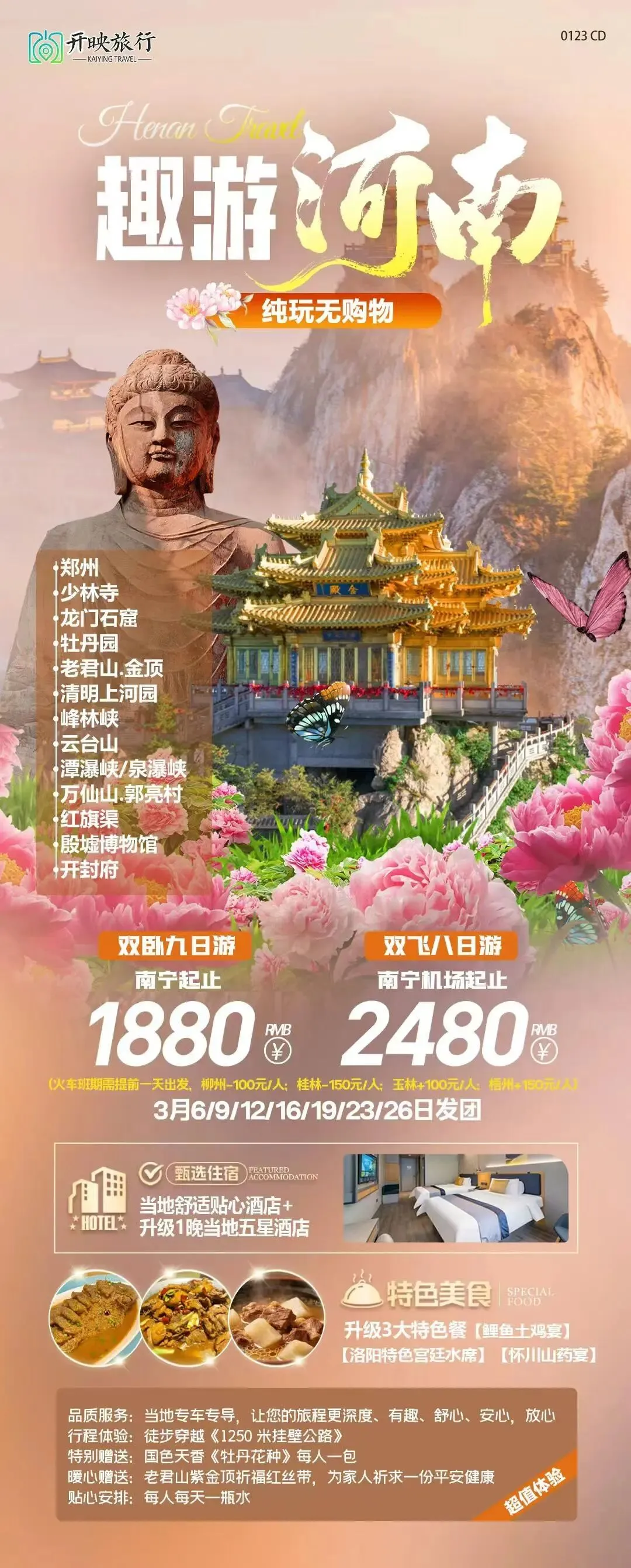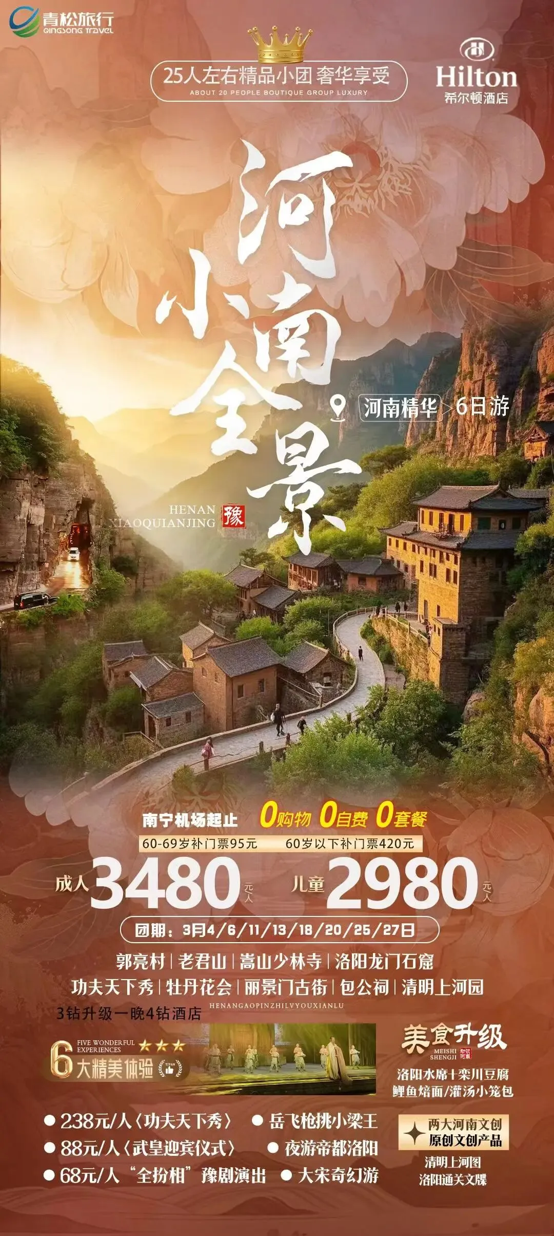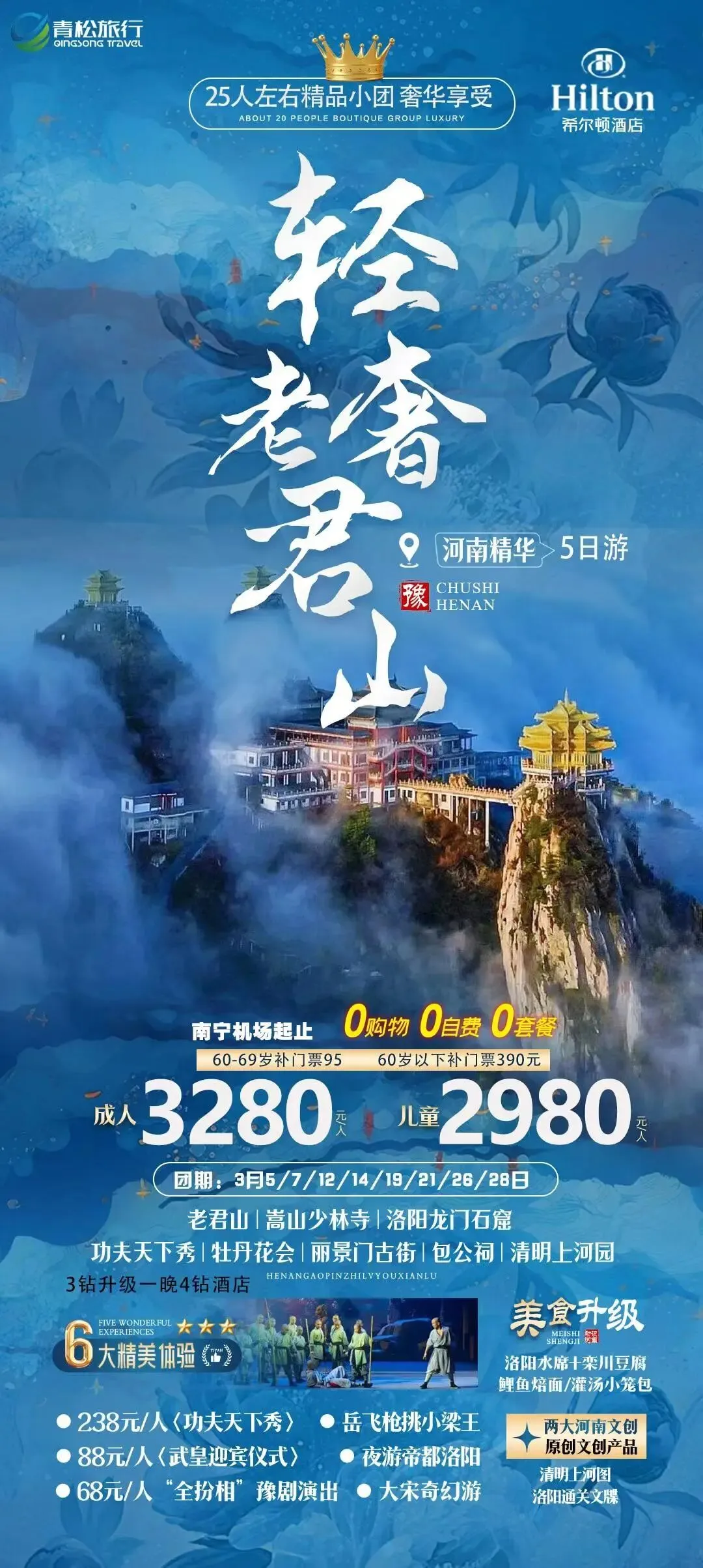 河南:3月旅游线路汇总(景点:少林寺、清明上河园 、龙门石窟、应天门、洛邑古城、郭亮村、挂壁公路、云台山、老君山、曹魏古城.)