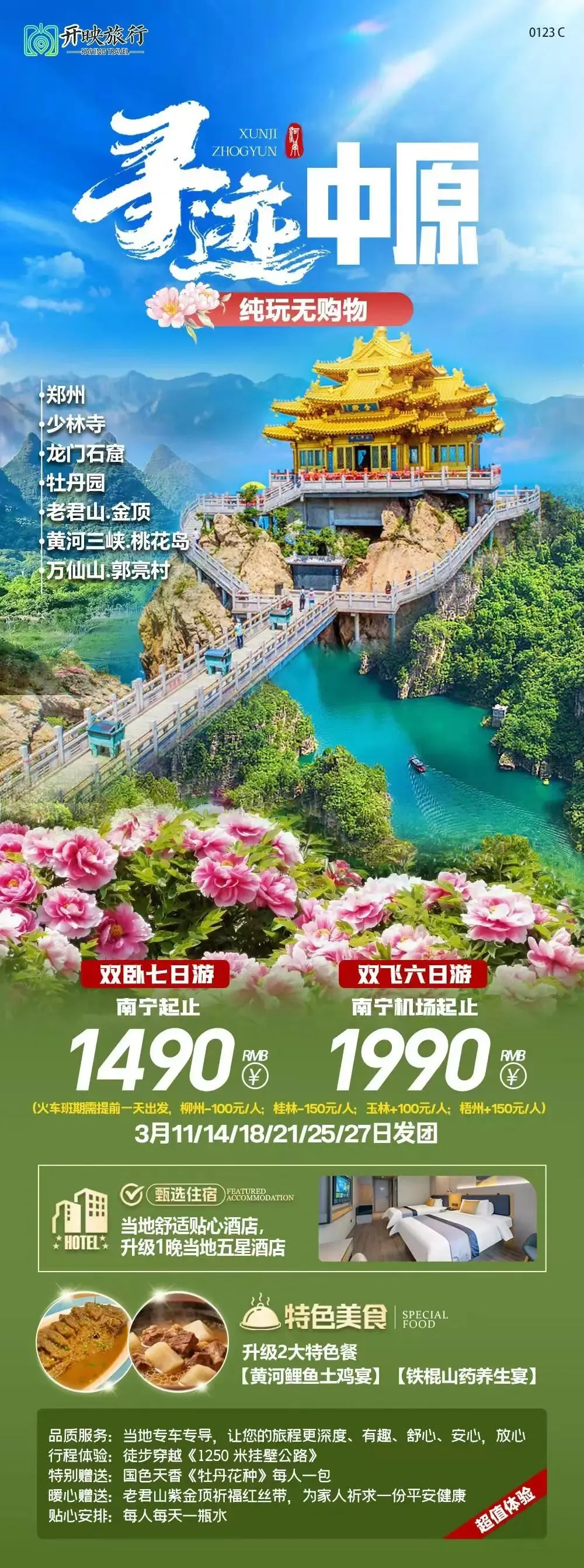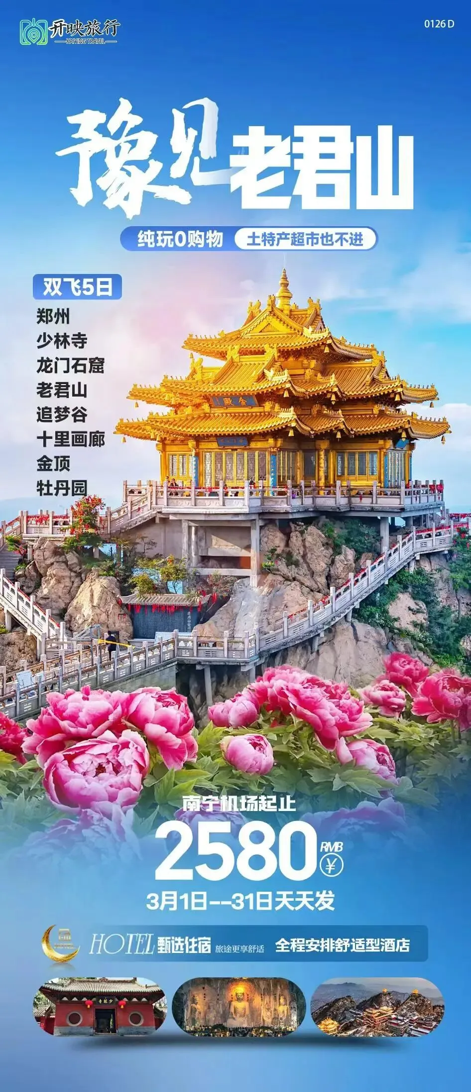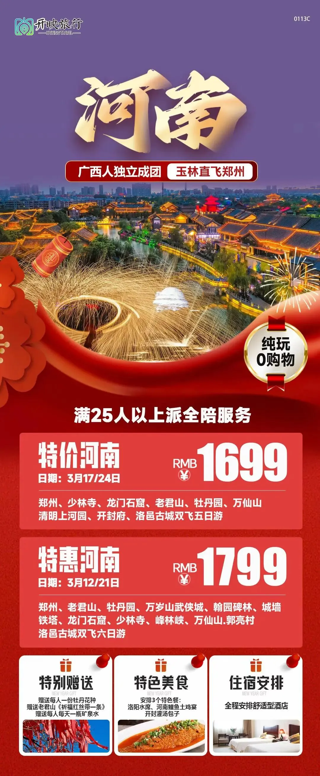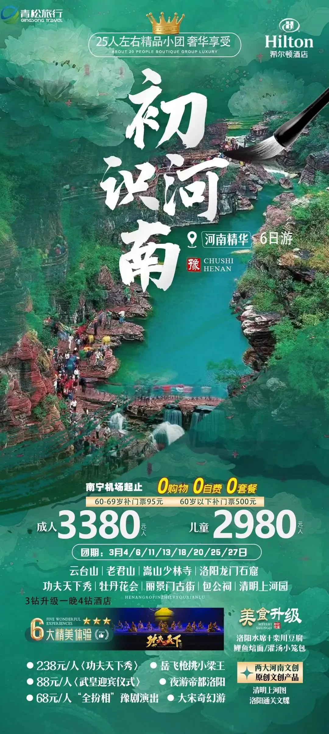 河南:3月旅游线路汇总(景点:少林寺、清明上河园 、龙门石窟、应天门、洛邑古城、郭亮村、挂壁公路、云台山、老君山、曹魏古城.)