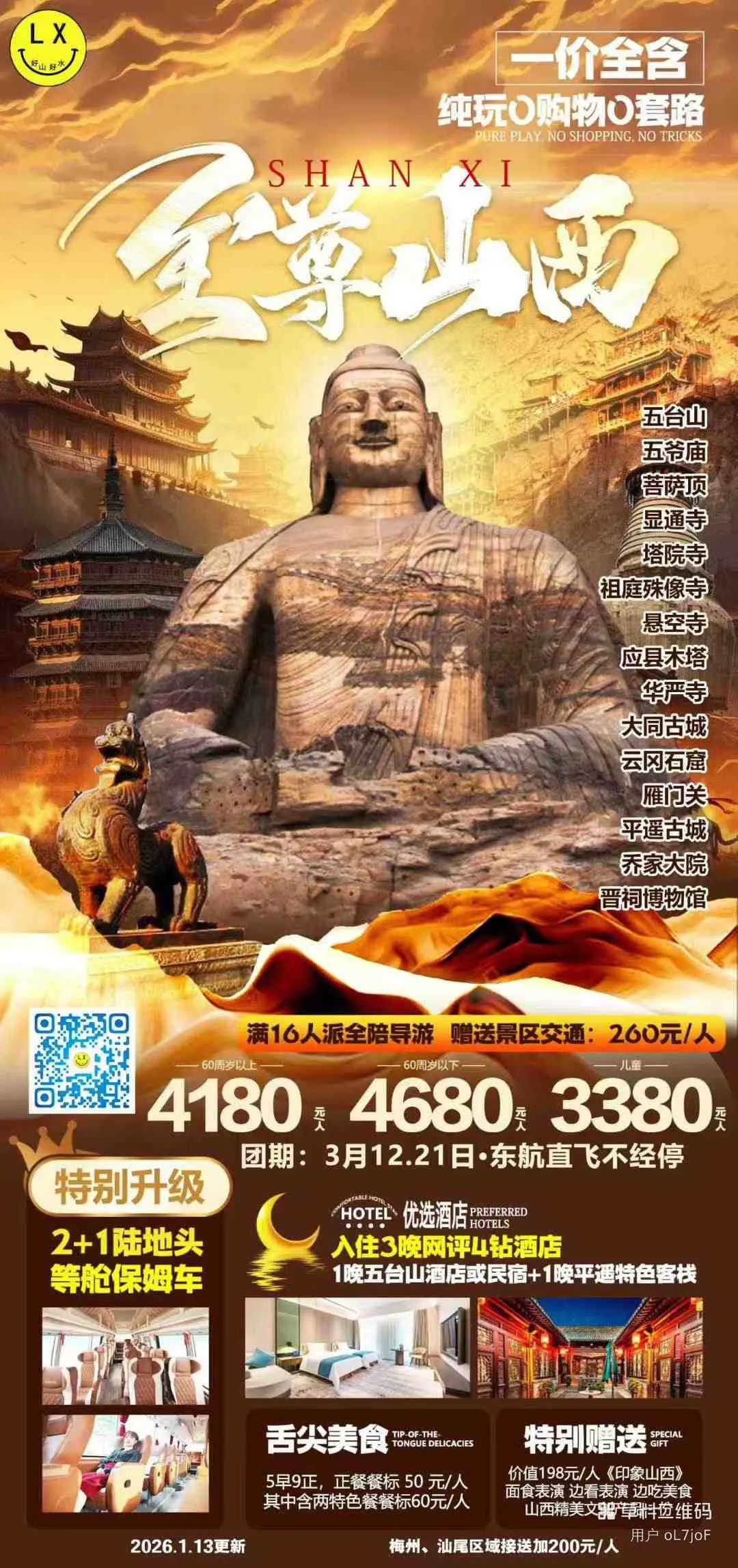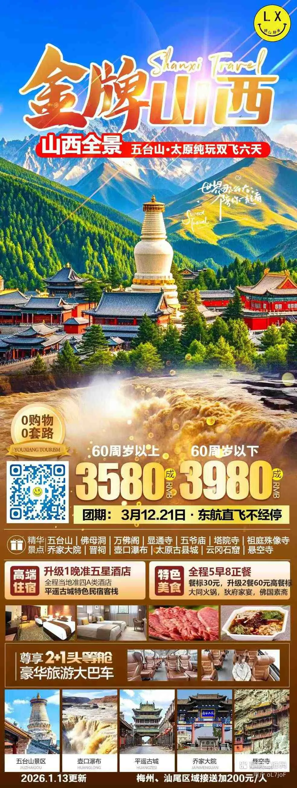 位于山西省忻州市五台县,是中国四大佛教名山之首、文殊菩萨的道场,同时也是世界文化景观遗产、国家 5A 级景区、华北屋脊所在地,兼具深厚的宗教底蕴与壮美的山地风光。