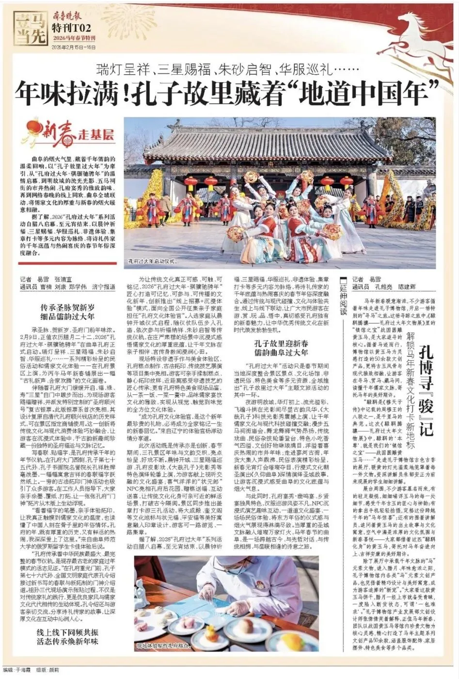 春节假期,三孔景区全员在岗,秉承“五美至礼、天下为公”的服务理念,倾力呈现“孔府过大年·骐骥驰骋年”文化盛宴。