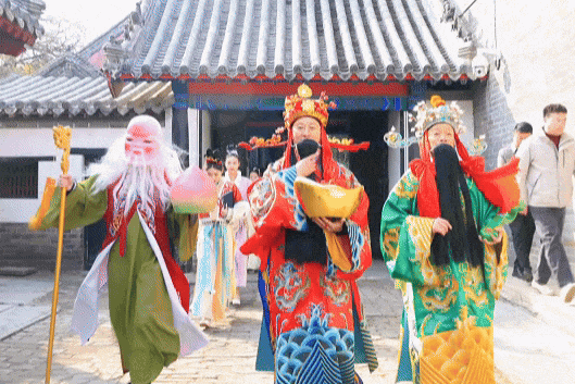 在三孔景区,偶遇身着华服的“福禄寿”三星,他们含笑巡游于青砖灰瓦之间,将福气递到每一位游客的掌心,这不仅是表演,更是一种源于古老年俗的赐福仪式。