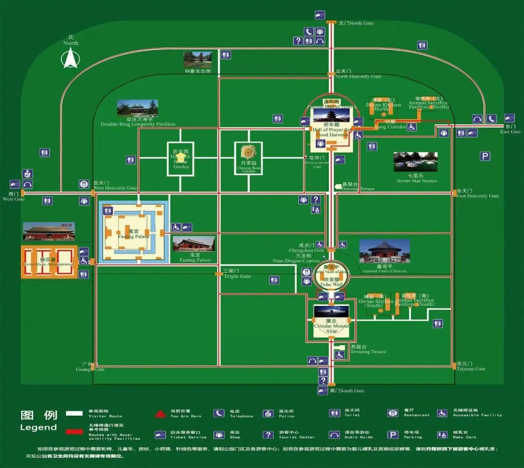 天坛(Tiantan)是明清两代皇帝祭天、祈求五谷丰登的神圣场所,其整体布局与建筑形制集中体现了中国古代皇家建筑艺术与工程技术的巅峰成就。如今的天坛公园占地约201公顷,园内不仅保存着祈年殿、圜丘坛等标志性历史建筑,还分布着长廊、七星石、古柏林等众多自然与人文景观。