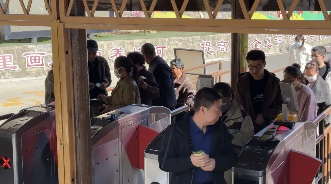 景区内处处洋溢着欢乐祥和的节日气氛。小吃摊前,热气腾腾的地方特色美食香气四溢;土特产店里,富有当地特色的文创产品备受青睐;休息区内,游客们分享着各自的旅行故事……