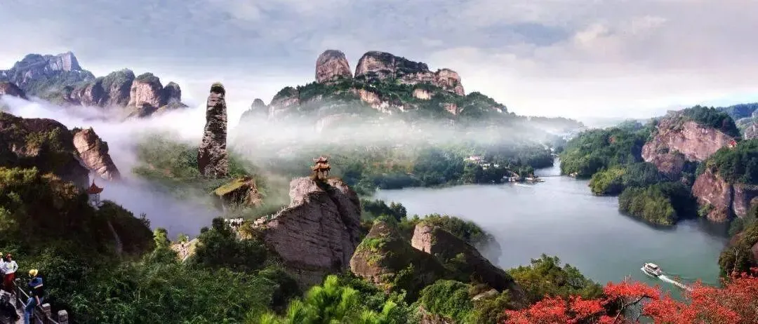 后前往【冠豸山】,冠豸山,旧称东田石,又称莲花山。位于中国福建省龙岩市连城县城东1.5公里处。冠豸山于1986年被评为福建省十佳风景区,1994年被确定为国家重点风景名胜区,2000年被评为国家4A级旅游景区。2009年入围第五批国家地质公园。主峰五老峰,海拔661米,冠豸山平地兀立,柱石林立,险峻而奇幽。山腰间有一块巨石,形状如獬豸的头部,因而得名。冠豸山是一座平地拔起的突兀之山,因其峰似巨冠,故名“冠豸”冠豸山山峻石奇,远望如欲放的莲花,又名莲花山。它与武夷山一起被人并称为“北夷南豸,丹霞双绝”。冠豸山雄奇险峻,山后是温柔秀丽的石门湖,碧水映丹山,阴阳称双绝,是游人们读不够的生命大典,作为冠豸山水代表作的“生命之根”和“生命之门”两个形象逼真的景点相距只有1公里之遥,一个在水中,一个在湖畔,阴阳相对,遥呼相应,堪称华夏一绝、神州奇观,人称“阳刚天下第一,阴柔举世无双”,被誉为“客家神山”,“生命神山”。