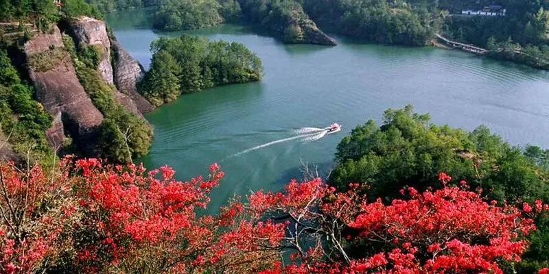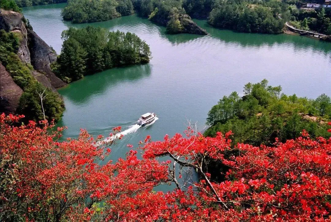 后前往【石门湖】,石门湖风景名胜区,是国家级水利风景区。如一块翡翠,镶嵌在冠豸山的险峰奇谷中,四周环山,"是连城昔日八景之一的"石门宿云"所在地。要深度感受石门湖的清幽以及风景如画,选择荡舟其间,无疑是最好的方式。登上游船,缓缓前行,船桨划破波光潋滟的湖面,推动着小舟时而穿过狭窄的峡谷,时而闲庭信步开阔的湖面,"水转山间走,山回水中行",山风习习,清凉舒坦。山在慢慢后退,水在慢慢后退,眼看就到湖的尽头,"山穷水尽疑无路",却"柳暗花明又一村",豁然开朗处曲径通幽,山环水绕,水傍山立。一个个活灵活现的水面奇观,历历在目,一景接一景,一画连一画,让您亲历人在画中游的惬意旅程。偶尔,一两只白鹭、野鸭,从湖边的绿林中飞出,掠过水面,生机 盎然,引来无数游人惊叫。景区内自然景观和人文景观丰富,青山绿水、水清如碧、蓝天白云,融为一体,是人们旅游、休闲度假的理想之地。