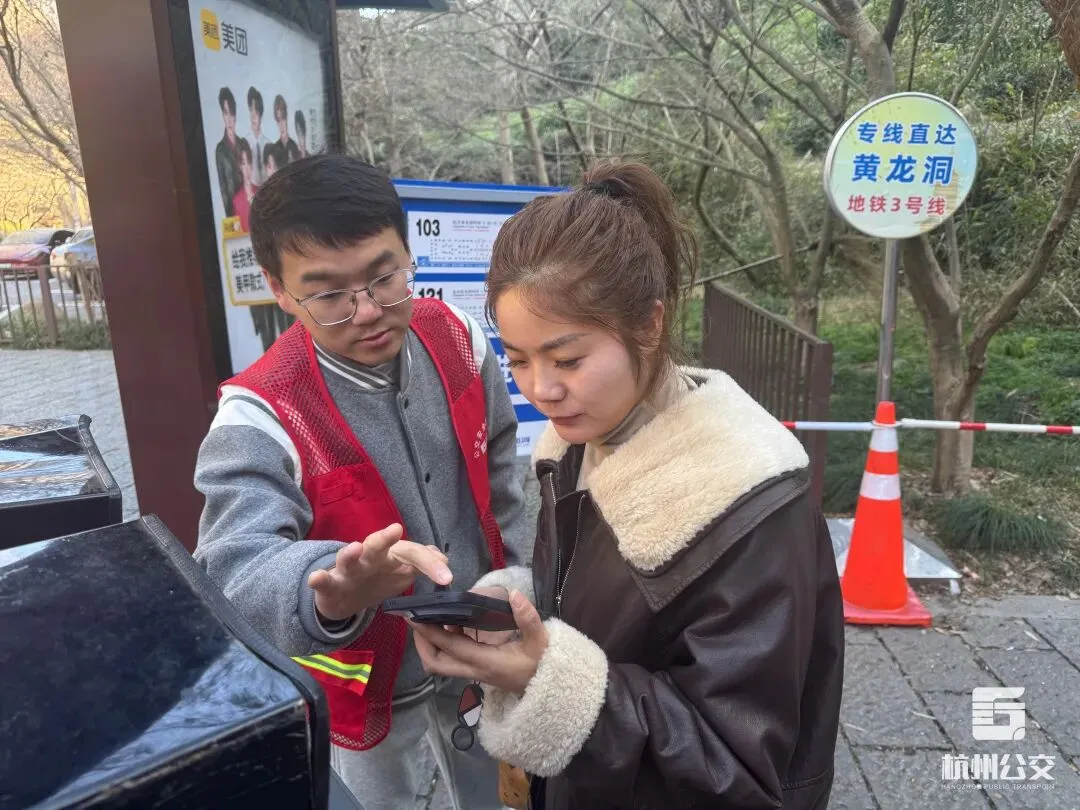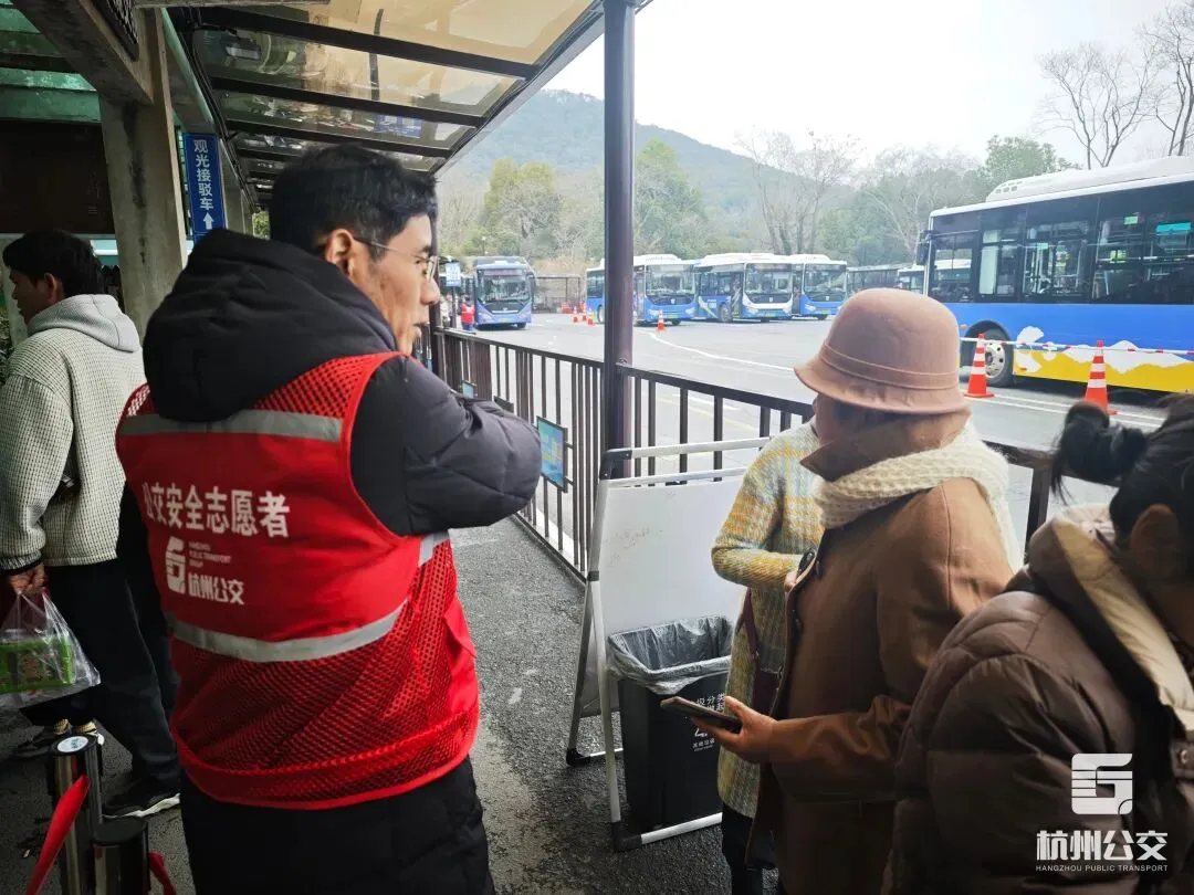 走进西湖景区,无论是龙翔桥、吴山广场,还是灵隐东、苏堤南口、长桥,每一个公交站点,都能看到公交人忙碌的身影,他们身着红马甲、蓝马甲,成为了新春祈福路、赏春路上,最贴心、最可靠的“指引人”。每天天还没亮,当第一班公交车缓缓驶出场站,他们就已到岗就位,直到深夜。