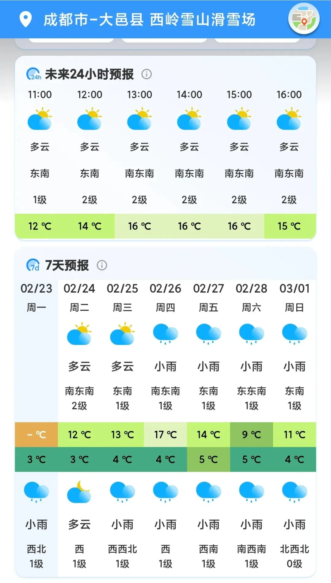 西岭雪山景区2月24日(初八)气象预报