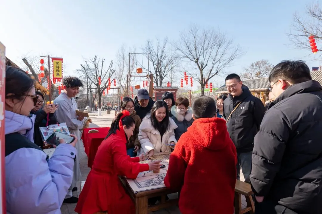 活动期间,景区以根祖文化为核心,推出九大主题活动及三十余场演出。在根字影壁前,晋南特色《花样锣鼓》准时开演,铿锵的锣鼓声与游客的欢呼声交织成热闹的新春序曲。NPC互动演出《槐花教你说土话》,通过方言教学拉近游客与历史的距离,陕西汉中张先生带着孩子反复练习洪洞方言,兴奋地分享:“孩子学得特别认真,还得到‘槐花姐姐’的夸奖!”除此之外,更有《大槐树移民》《铁锅记》《传统婚庆》等特色表演轮番上演,“十二生肖贺新岁”“根脉福礼·福运拓纸”等互动活动持续发力。