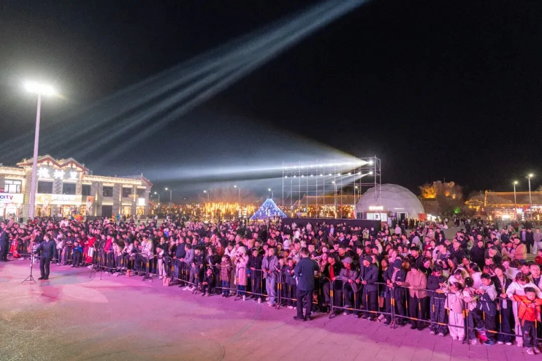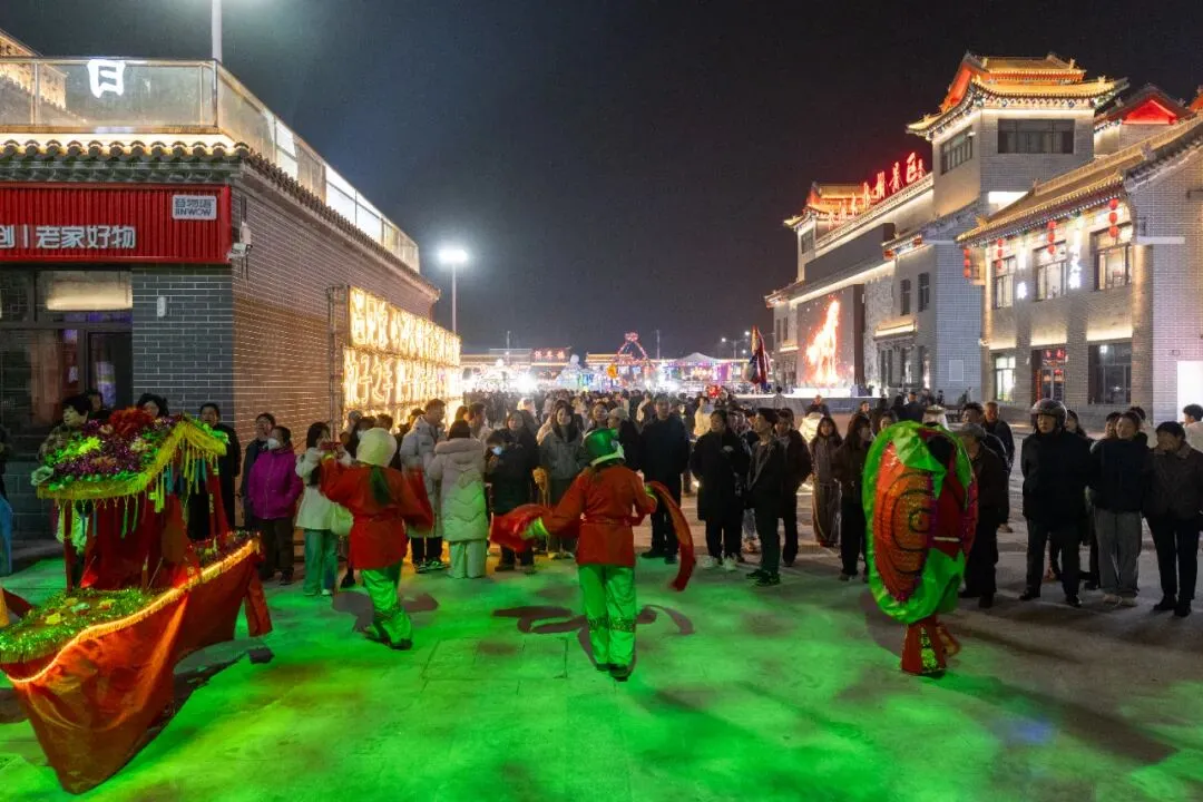 与景区遥相呼应的槐树里商业街区则以丰富的业态及全天候模式,为游客打造了沉浸式的新春游园体验。美食市集、娱乐乐园、非遗工坊及各类地方特色门店,让游人流连忘返。同时,景区NPC“财神”与“月老”穿梭在街巷间,与游客亲切互动、派送祝福,欢声笑语不断。晚上,街区瞬间变身光影世界,“槐光夜宴主题灯会”点亮整个夜空,古槐映月、千里归乡等网红灯光造型成为游客的热门打卡点。此外,《民俗洪洞范儿》《新春烈焰秀》《萌偶热舞派对》等表演接连登场,热闹氛围丝毫不减。