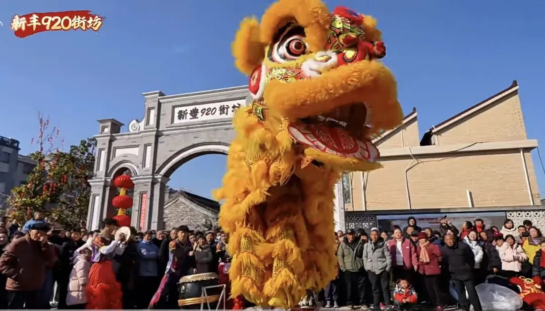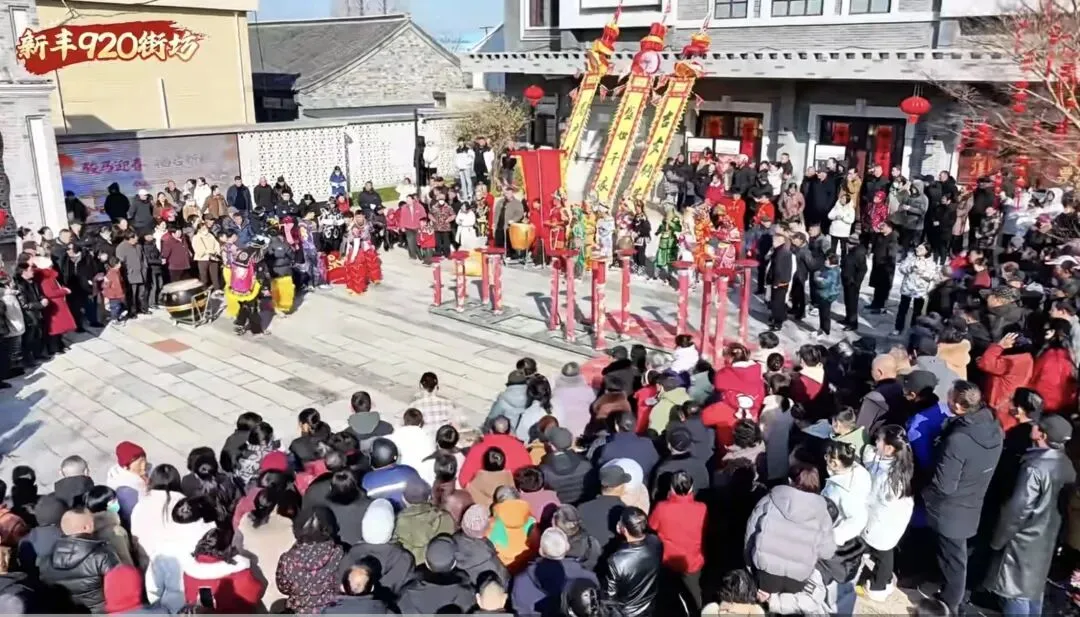 新丰920街坊烟火气十足,成为解锁市井年味的核心地标。这里非遗盛宴轮番上演,铿锵有力的英歌舞、惊险刺激的中幡表演、韵味十足的变脸、喜庆热闹的舞龙舞狮,引得游客阵阵惊呼与喝彩。