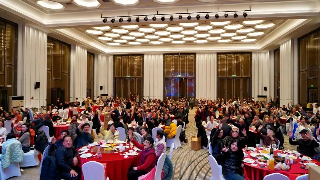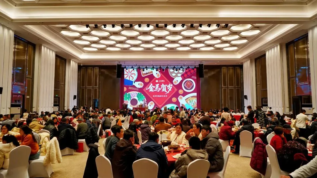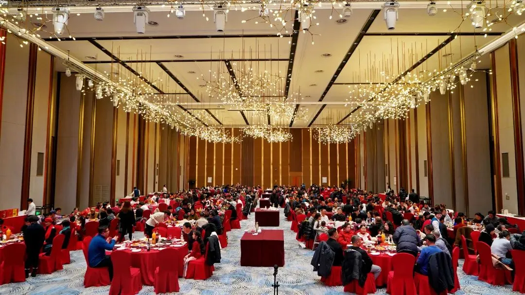 宴会大厅内,宾客们围坐举杯,在珍馐美馔中共话团圆,现场欢声笑语不断,处处洋溢着新春的蓬勃生机。