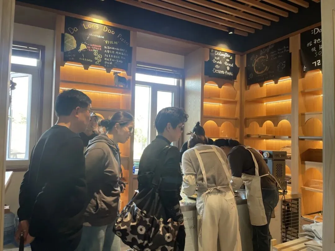 手工窑炉披萨DIY体验区热度爆棚,宾客们亲手揉制面团、铺撒馅料,在烟火气中解锁新春美味。华灯初上,入住的游客推窗即揽璀璨夜景,尽享静谧的田园浪漫。