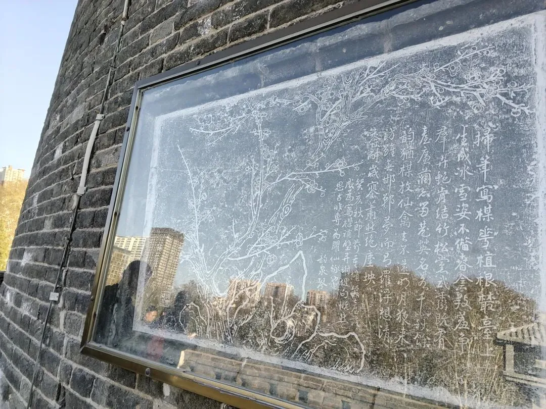 王琴堂梅花诗碑,作于1923年,碑面绘有虬劲梅枝并题五言诗一首。