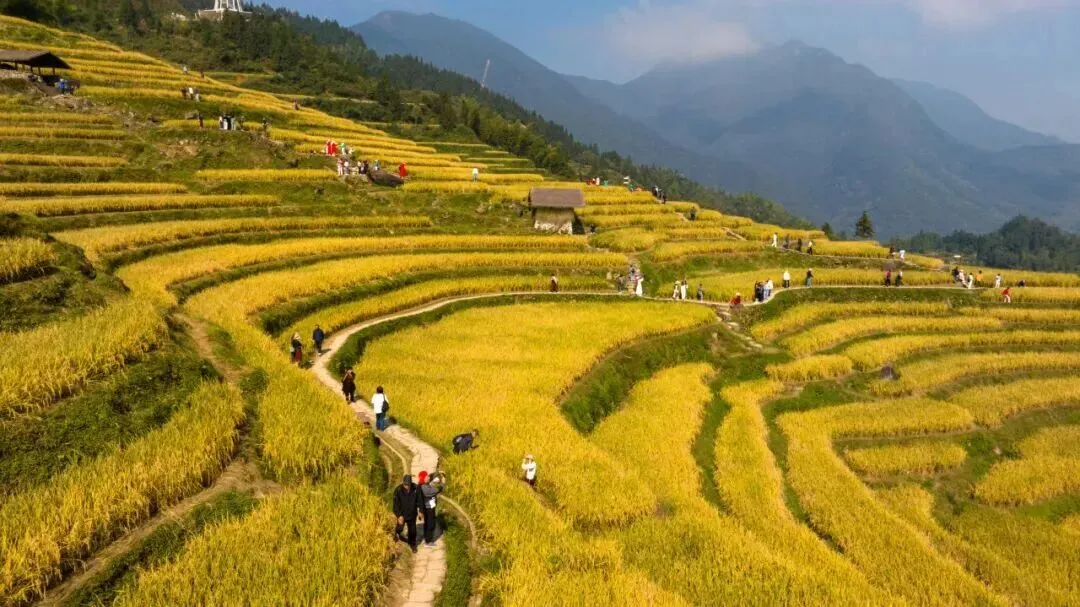 层层叠叠的云和梯田,则铺展出另一种壮阔。作为华东地区规模最大的梯田群,它跨越高山、丘陵与谷地三大地质景观带,被誉为“中国最美梯田”。春水盈田,银波荡漾;夏禾葱茏,绿浪翻涌;秋收金黄,如诗如画;冬雪覆垄,静谧辽阔。梯田、云海、山村、竹海、溪流、瀑布、雾凇交相辉映,在四季流转中演绎着农耕文明的韵律。