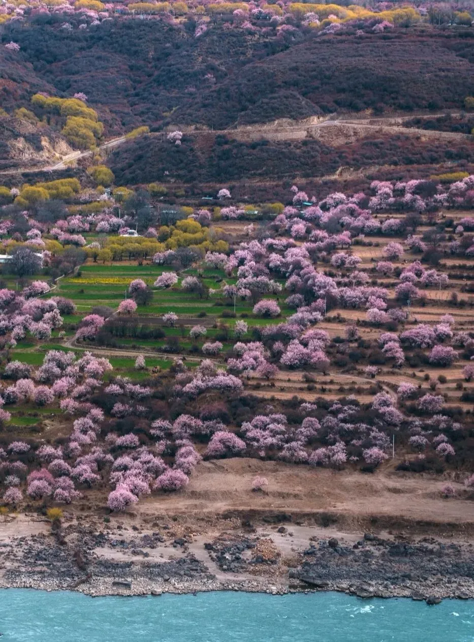 林芝的桃花,是冷调的浪漫。三月下旬的雅鲁藏布江两岸,桃花开得像涂抹了粉色的云雾,雪山在后,花海在前——那种反差美太震撼。