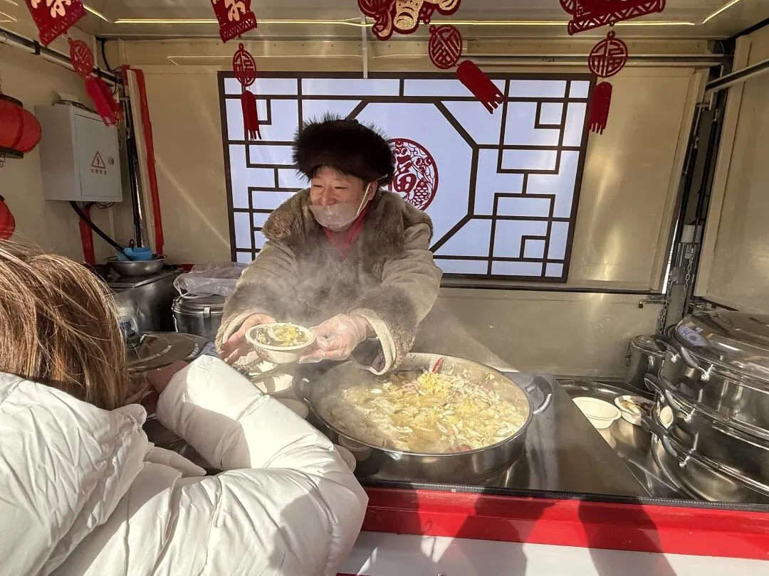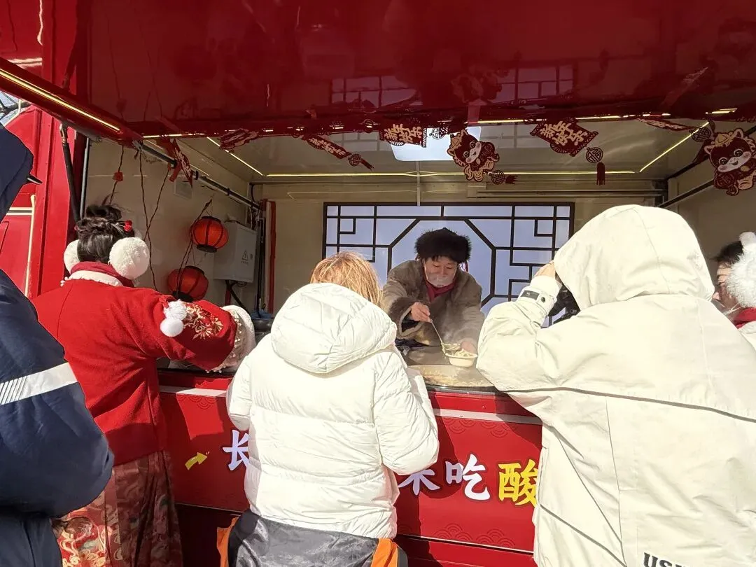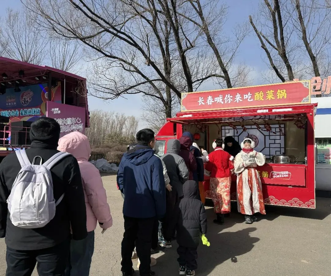 当日下午,长春文旅快闪小分队转战净月潭景区,悠扬歌声与新春氛围相得益彰。现场还设置了特色美食体验区,热气腾腾的酸菜锅香气浓郁,让游客在游览过程中品味地道东北风味,感受真切的烟火温情。