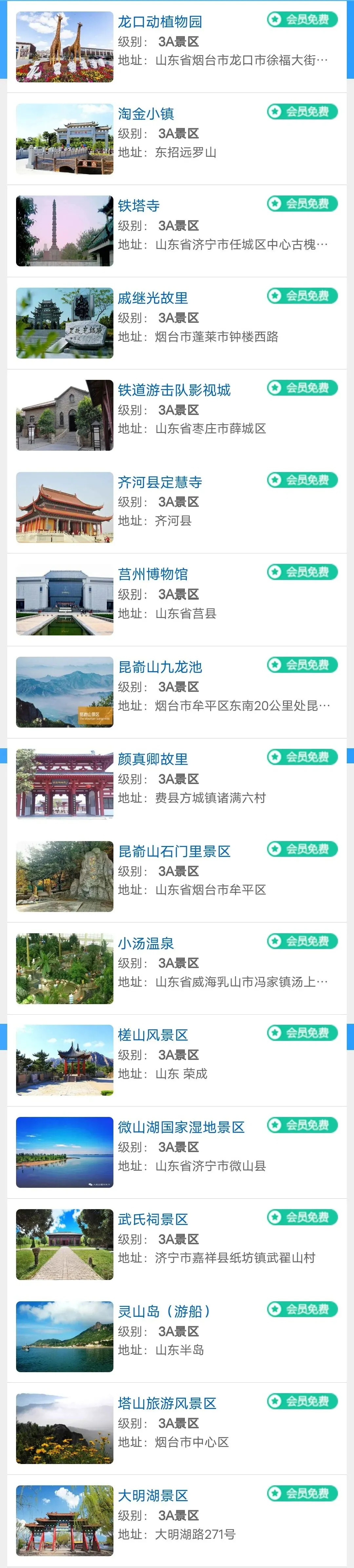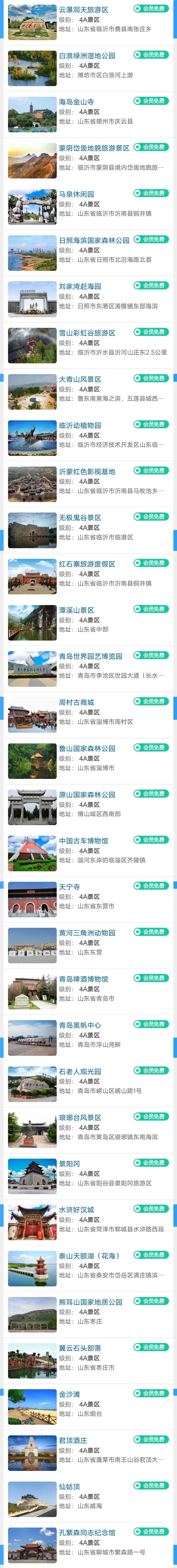 山东旅游年卡景区目